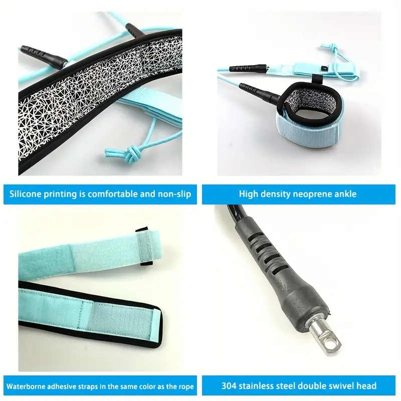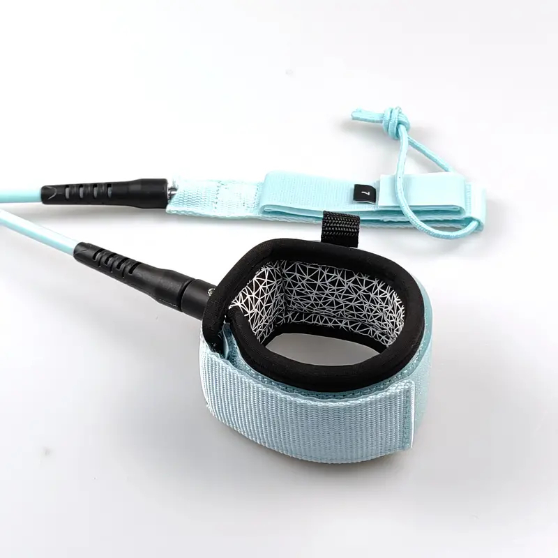 サーフボードリーシュコード ロング用 9ft/7mm サーフィン アクアブルー水色 足首用 アンクル パワーコード サップ ノーブランド