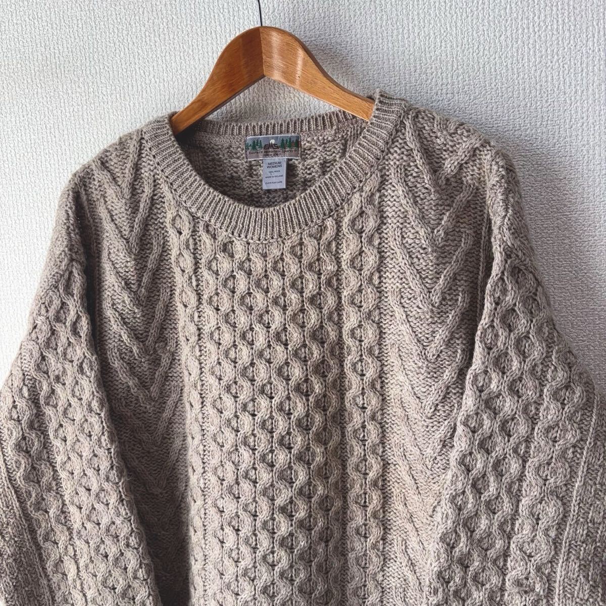 アイルランド製 EMS アラン ニット セーター M ウール ケーブル編み フィッシャーマン
