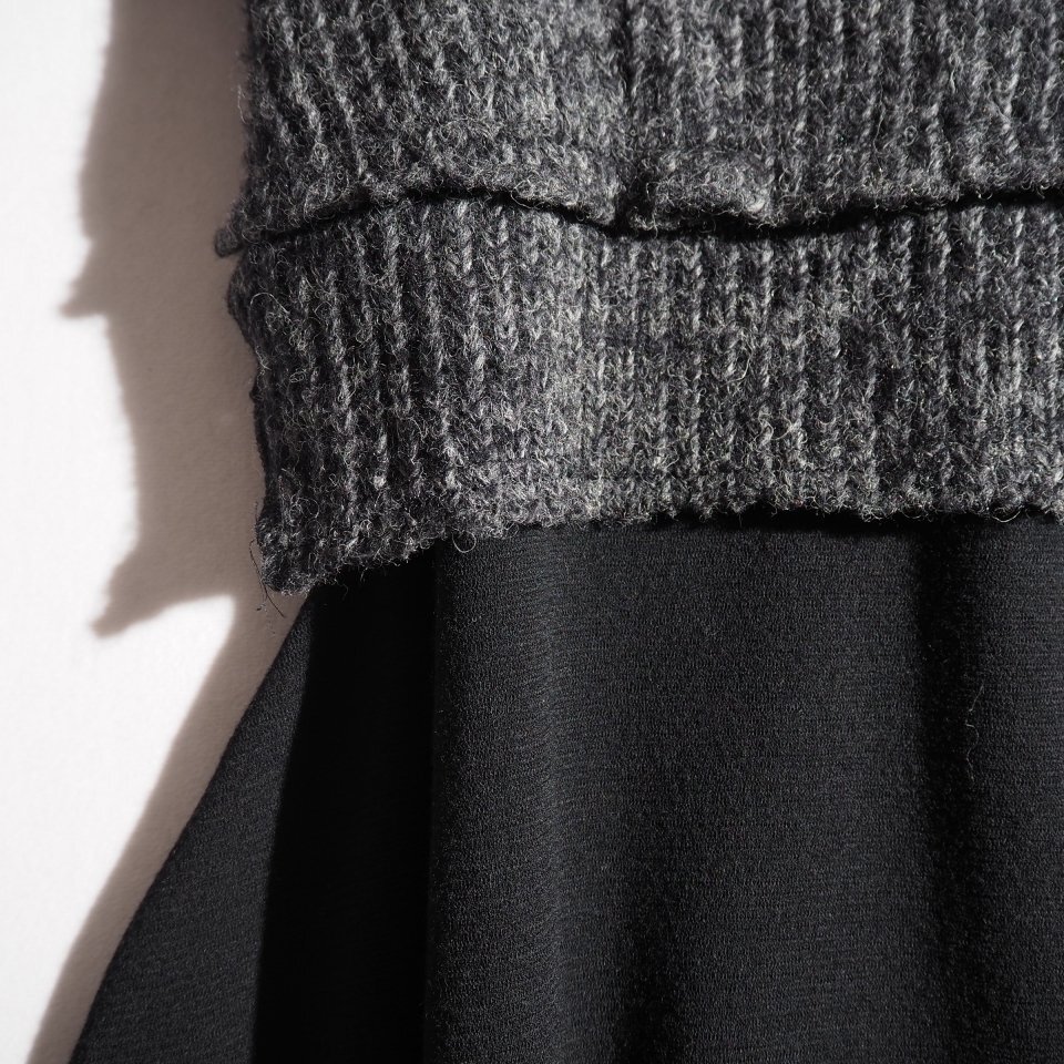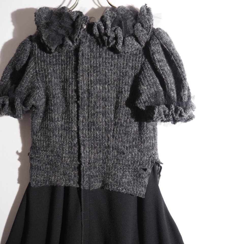 U8242P ▼COMME des GARCONS コムデギャルソン▼ 14AW フリル ショートスリーブ ドッキング ニットワンピース グレー ブラック 秋冬 rb mks