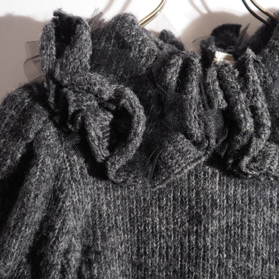生地 :やや厚みのある柔らかウールニット(チュール装飾あり)×落ち感がある目の詰まったドライタッチなストレッチニット