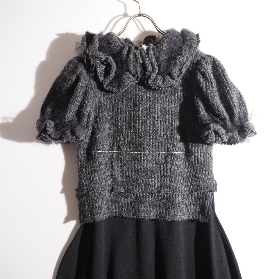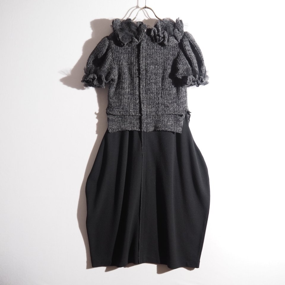 14AW フリル ショートスリーブ ドッキング ニットワンピース グレー ブラック S