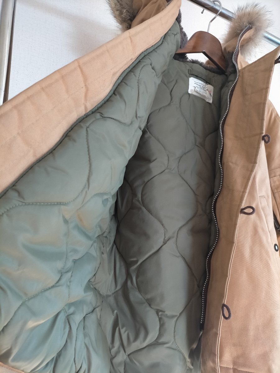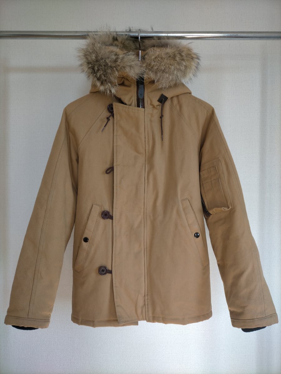 状態は若干使用感程度、フロントのボタン1つ欠損(画像9枚目参照)、右袖に目立たない程度の薄汚れあり(画像10枚目参照)、その他やぶれ等のダメージなく全体的には状態良好だと思います。