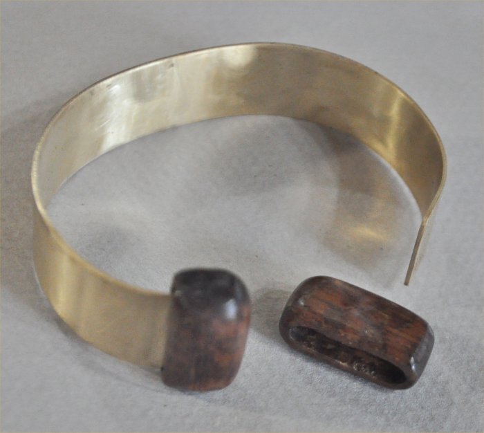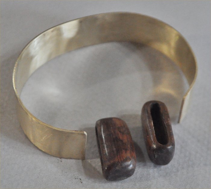 ナンタケットバスケット用のスネークウッドキャップの真鍮バングル15mm幅サイズは、Mサイズ15mm幅 真鍮バングル高級希少木材のスネークウッドのキャップに真鍮のバングルセットです。真鍮は0,8mmなので重くはなく多少のバネがあり付けやすいバングルです。籐の編み込みで真鍮のゴールド部分が見えるように編み込むと素敵なバングルになると思います。