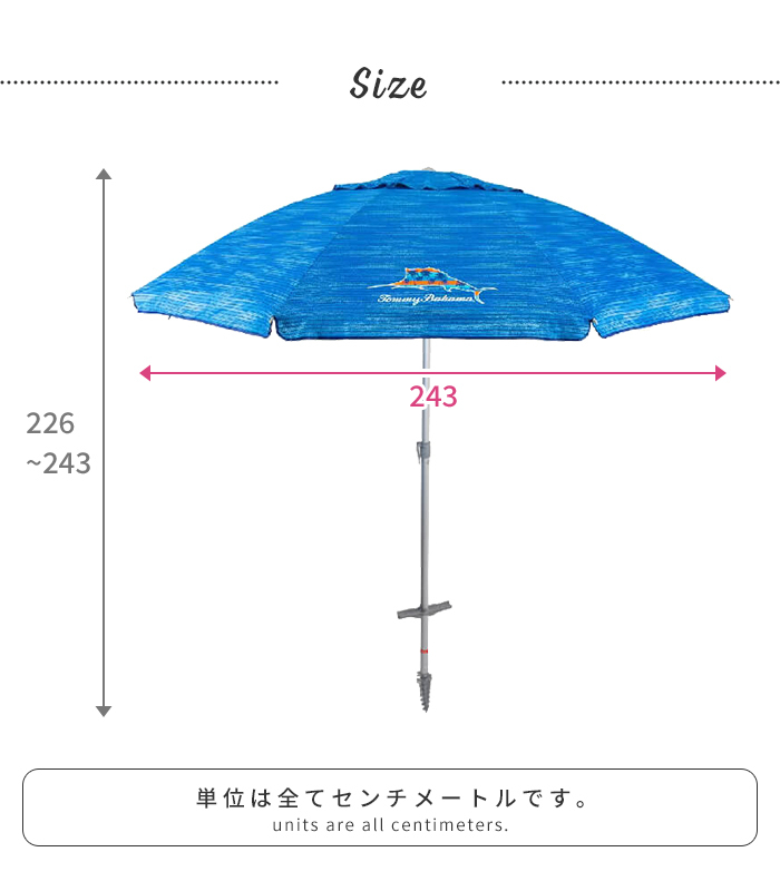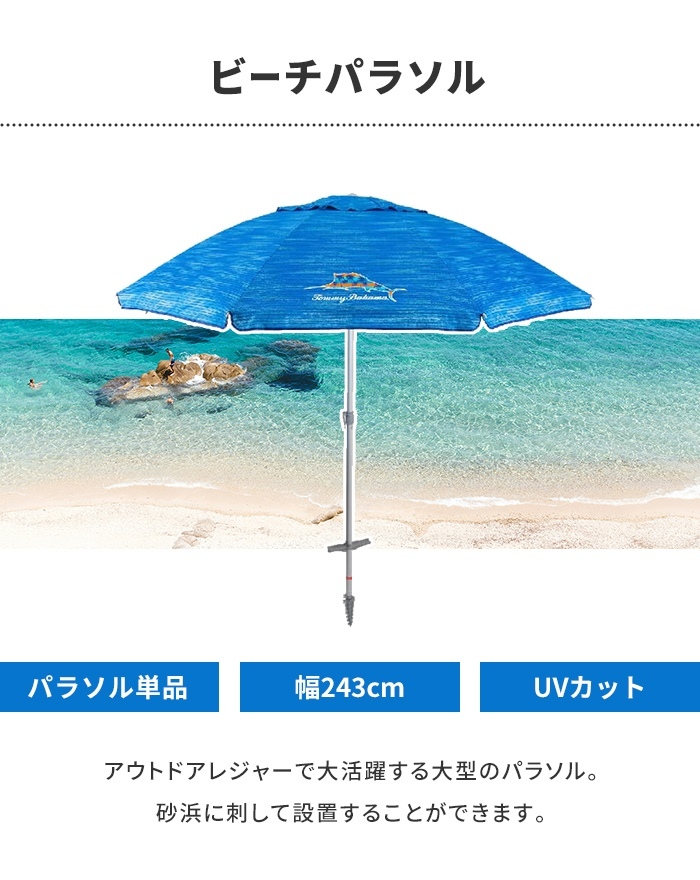 Tommy Bahama トミーバハマ ビーチパラソル 幅243cm 大型 日よけ アウトドアパラソル ガーデンパラソル 折りたたみ 直挿し 海 山 川 夏 リゾート レジャー ビーチ 海水浴 テラス ベランダ 省スペース コンパクト 自立型 おしゃれ オーニング シェード USA アメリカ直輸入 ブルー 青 レジャー BBQ キャンプ 奥行243 高さ226-243 サンシェード 大型パラソル レジャーパラソル アウトドア用品 レジャー用品 日除け 日陰 日焼け対策 便利 アウトドアレジャー 折り畳みタイプ 庭 ビーチ 海水浴場 |