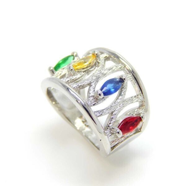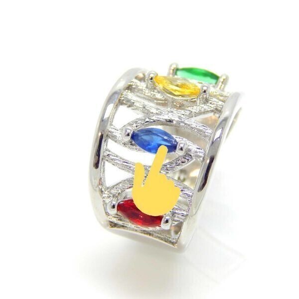 素材:シルバー925/CZジルコニア サイズ:11号 ※難有個所 2枚目矢印部分の石に欠けが見られます。 過度に気にされる方は入札をお控えください。 追跡番号有りのポスト投函にてお届けになります。 通常緩衝材により補強した簡易梱包になります。 お使いのブラウザや光の加減等により画像の色が多少異なって見える場合がございます。 到着時に不具合がございましたらお受け取り通知前にメッセージよりご連絡ください。 | |||