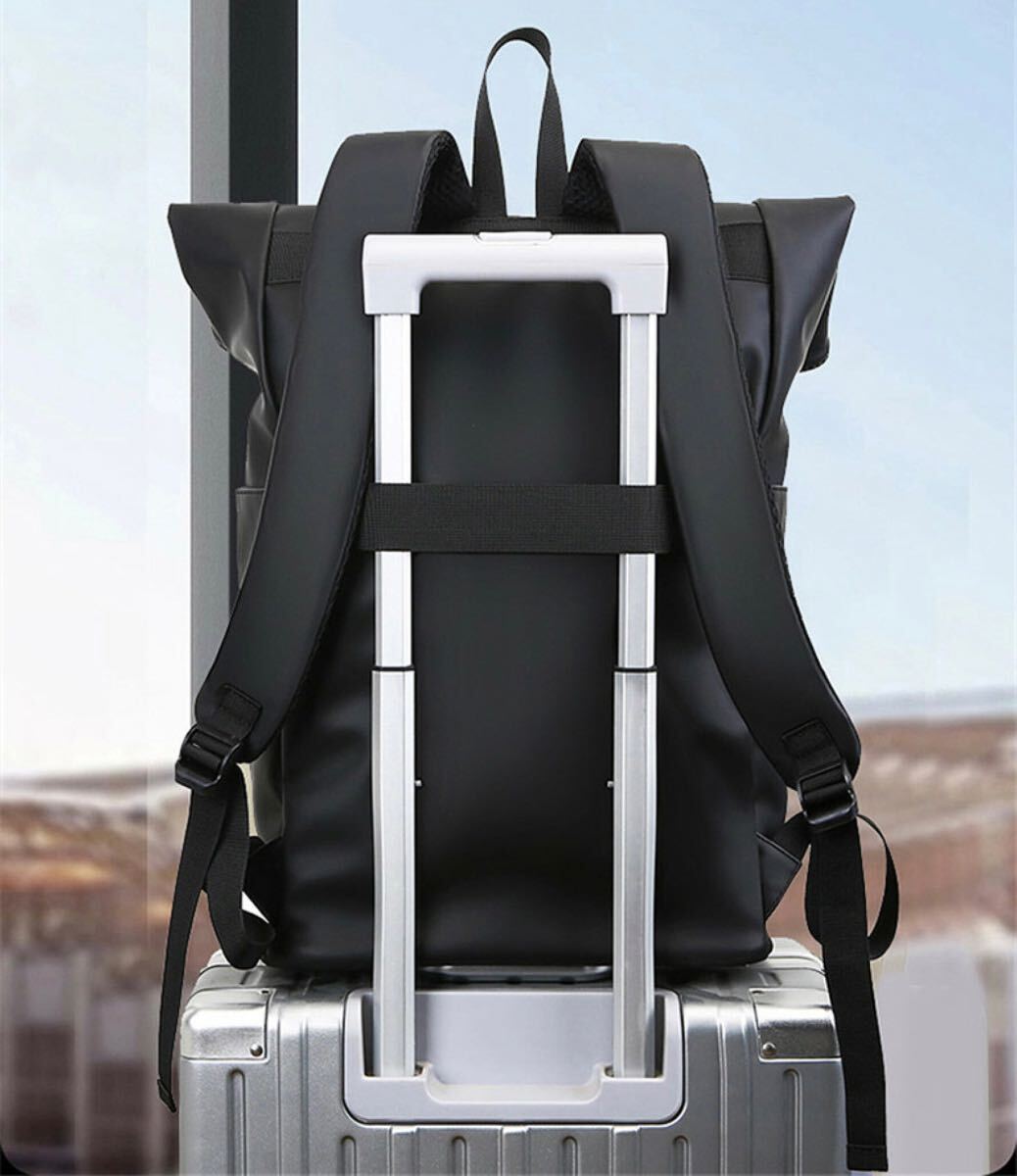 肩紐にはクッション素材が使われ、背面にはキャリーバー通しが付いています。