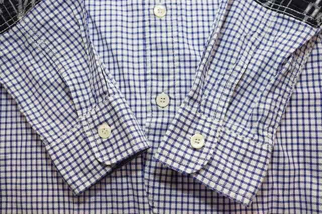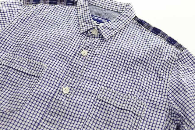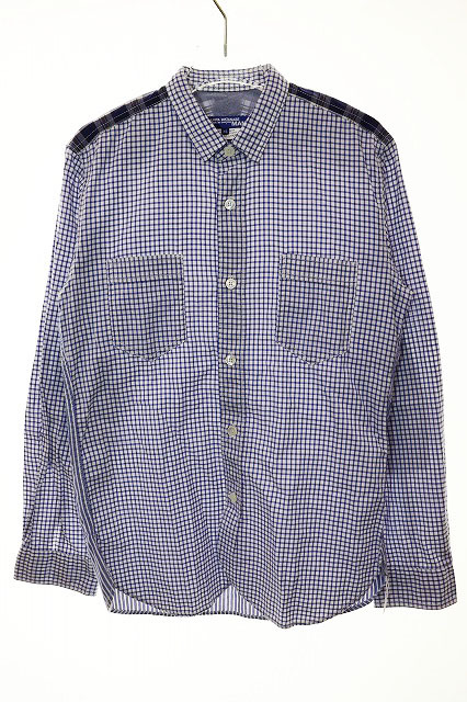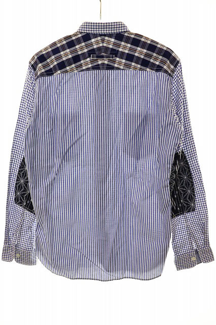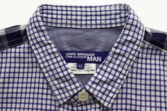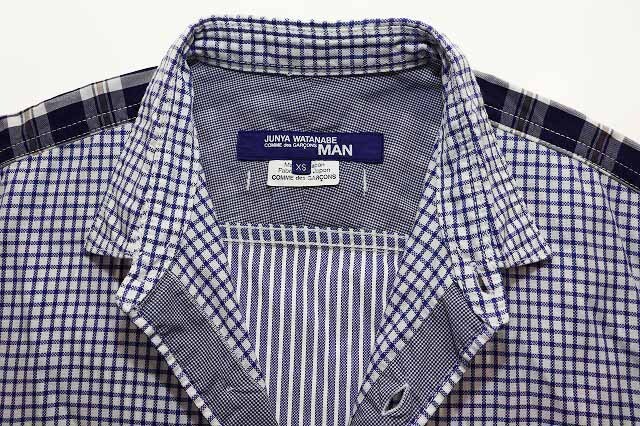 ジュンヤワタナベマン JUNYA WATANABE MAN オックスチェック シャツ XS WO-B011 エルボーパッチ ストライプ 切替 長袖 【ブランド古着ベクトル】●241215