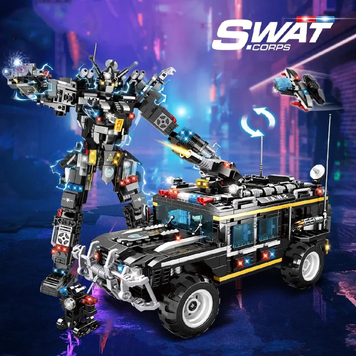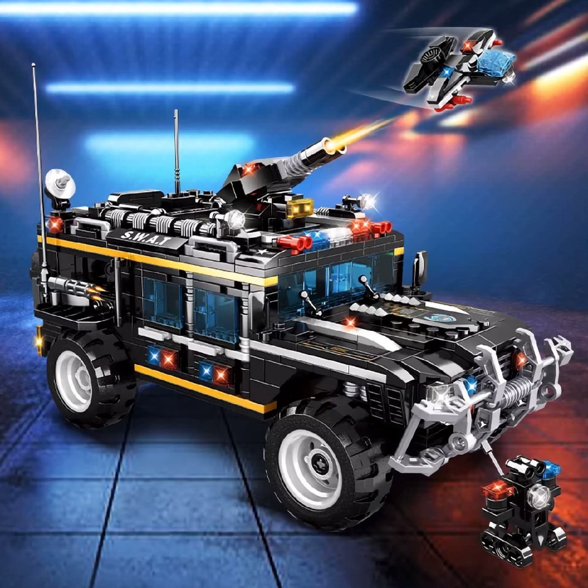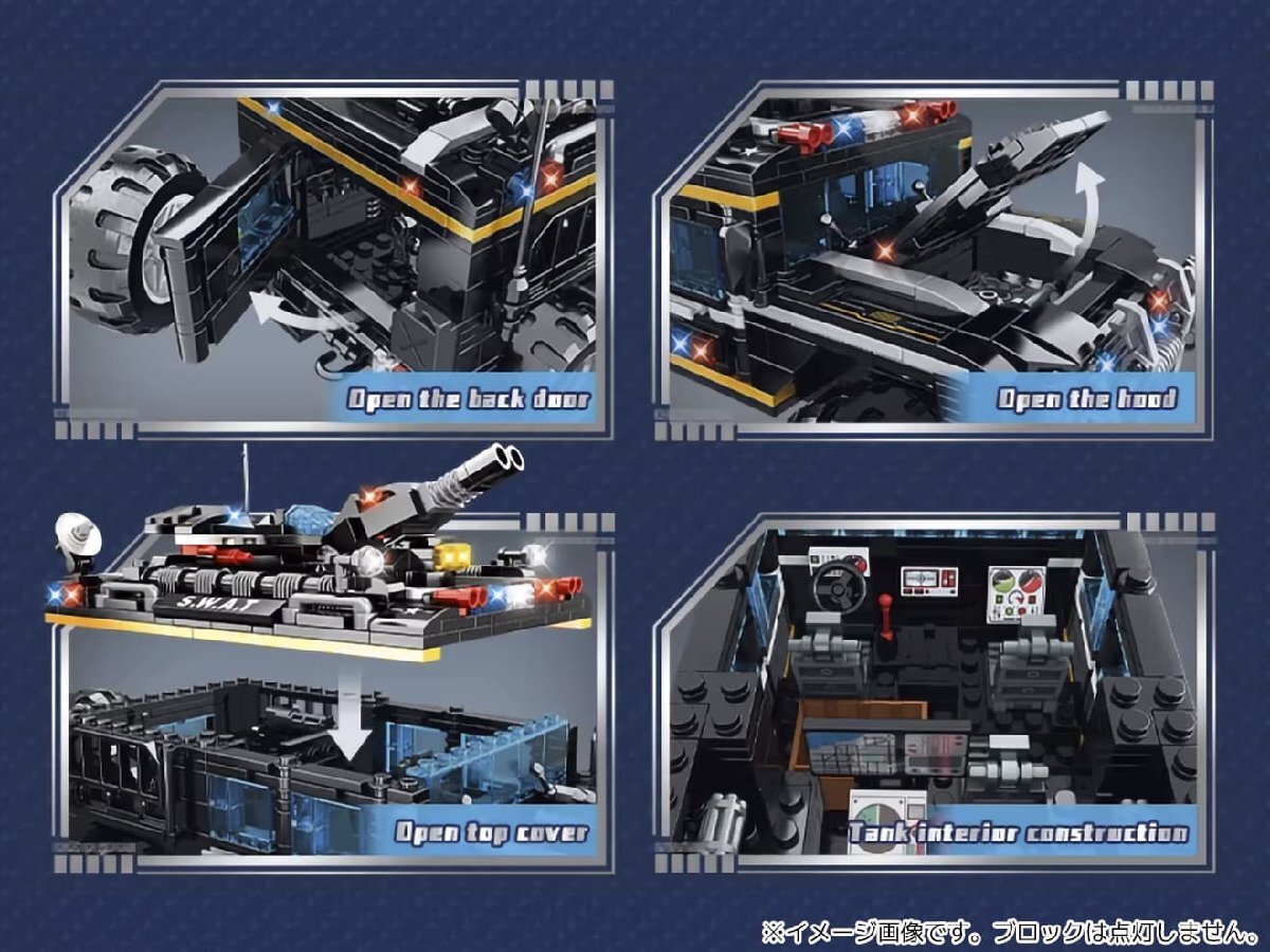 商品説明 ITEM INFO AFM SWAT シリーズ/掟破りのフォームチェンジ! AFM SWAT シリーズ 2WAY タイガー突撃装甲車 1034Blocksです。 楽しく組み立てて、カッコよく飾れるAFM ブロック SWAT シリーズです。 荒地でも120~140km/hを出すことでき、機動力が高いタイガー突撃装甲車。扉の開閉はもちろん、車内のインテリアまでリアルに仕上がります。 この装甲車は、なんと!掟破りのフォームチェンジが可能!組み換えるだけで全長29cmのロボットとして遊べます。 ブロックパーツにはSWAT刻印のものもあり、カスタムパーツとしても活躍してくれますよ! 1034個のブロックで構成されたキットは圧巻のスケールで、かなり作りごたえのあるキットです! 楽しく作れてインテリアとしてもグッド!ミリタリーマニアやブロック好きな方に是非! 商品基本情報・スペック ITEM SPEC ●商品名 : AFM SWAT シリーズ 2WAY タイガー突撃装甲車 1034Blocks ●商品番号 : M0097T ●ブランド : AFM ●付属品 : ミニフィギュア ●パッケージサイズ : 615mm×460mm×90mm ●完成サイズ(装甲車) : 約267mm×172mm×119mm ●完成サイズ(ロボット) : 約293mm×198mm×96mm ●素材 : ABS ●総ブロック数 : 1034 ●対象年齢 : 15歳以上 注意事項 ITEM NOTE ∇商品固有の注意事項 ※変形はしません。組み替えて車やロボットに変更できる商品となります。 ※光るブロックは付属していません。 ※小さなブロックが多く含まれています。誤って飲み込まないようにご注意ください。窒息などの危険があります。 ※誤飲の危険がありますので対象年齢を守り、小さなお子様だけでは絶対に遊ばせないでください。 ※当商品はレゴ(LEGO)商品ではございません。 ※弊社取扱商品以外への互換性はありませんのでご了承ください。 ※梱包は製品外箱に透明の緩衝材を巻いた簡易包装です。 ∇ご購入時の留意事項 ※商品はすべて点検してからのお届けになります。商品によってはパッケージの開封等を行う場合もございますことをご了承ください。 ※商品には万全を記しておりますが、万一不備な点がございましたら、お手数ですがお問い合わせフォームにてご連絡頂ますようお願い致します。なお、海外製品につきましては、輸入時についた若干の傷、痛み等が見られる場合がございます。 国内製品のような完全品をお求めの方はご遠慮下さい。 ※商品が適合外であった場合、またはお客様都合による交換・返品・返金は出来ません。よくお確かめの上、ご購入下さい。 ※モニター環境により、実際の商品の色と若干異なる場合がございますのでご了承下さい。 ※他サイトでも同時販売の為売り切れの際はご了承下さい。 ※売り切れの際は早急にご連絡させて頂きます。(当社休業日を除く) 関連商品 RELATED ITEM |