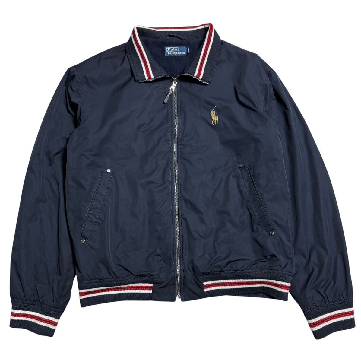 90s RALPH LAUREN ラルフローレン 胸ポニー刺繍 裏地フリース ジップアップ ナイロンジャケット ネイビー XL