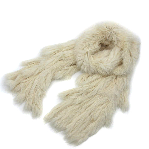 エポカ EPOCA ラビットファー 毛皮 フリンジ マフラー ストール オフホワイト 白 レディース