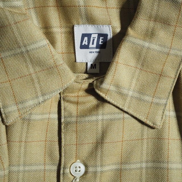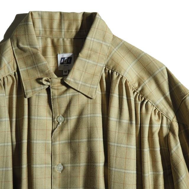 H5906f55 ■AIE エーアイイー × ビューティ&ユース■ シルクウール チェック オーバーサイズ ギャザーシャツ ベージュ M 秋冬