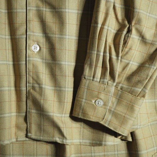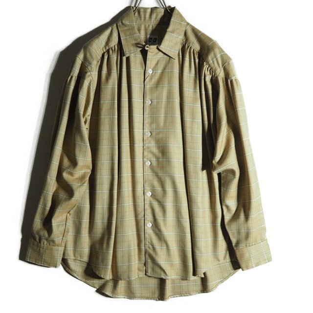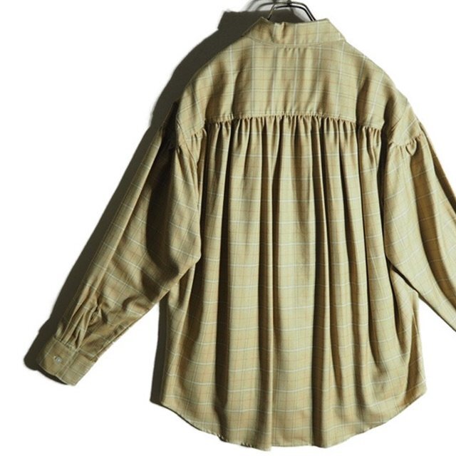 シルクウール チェック オーバーサイズ ギャザーシャツ ベージュ M