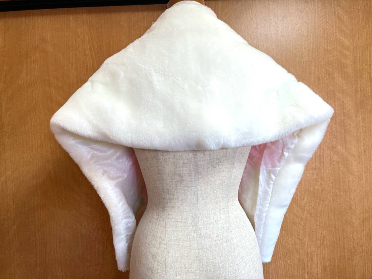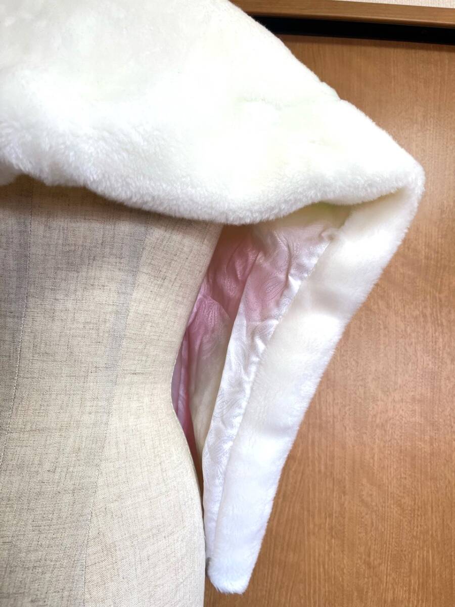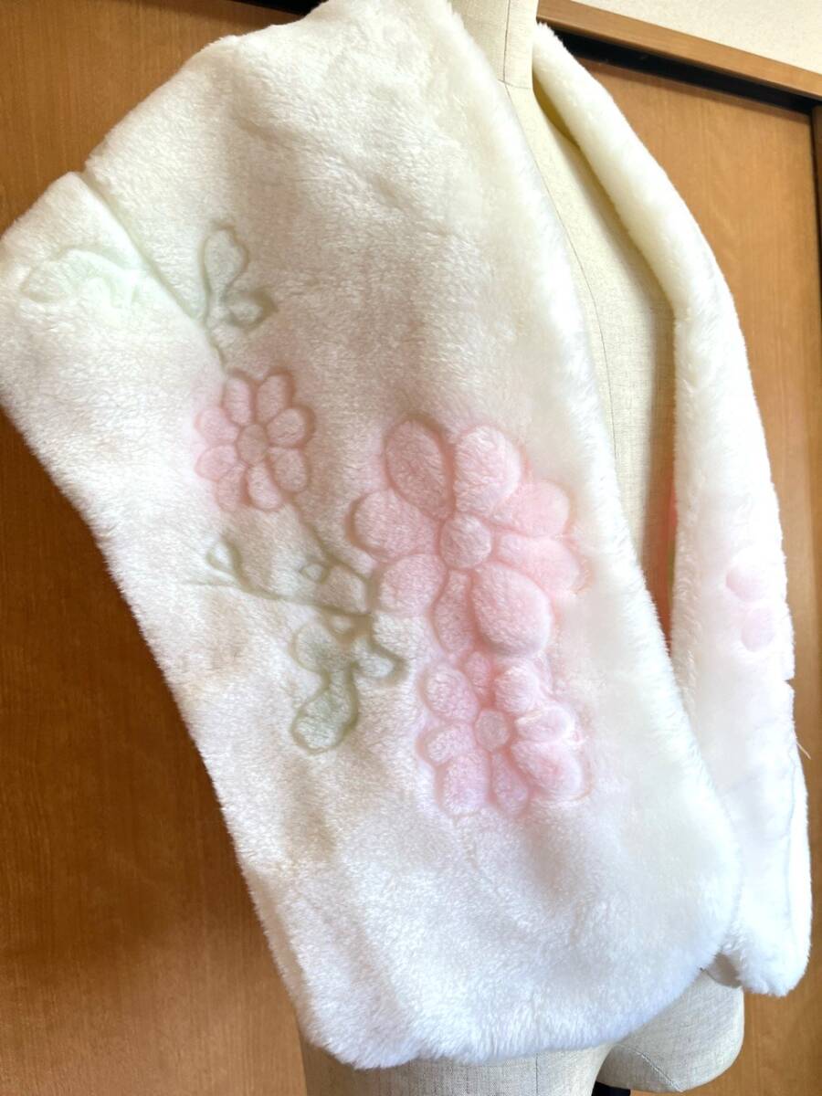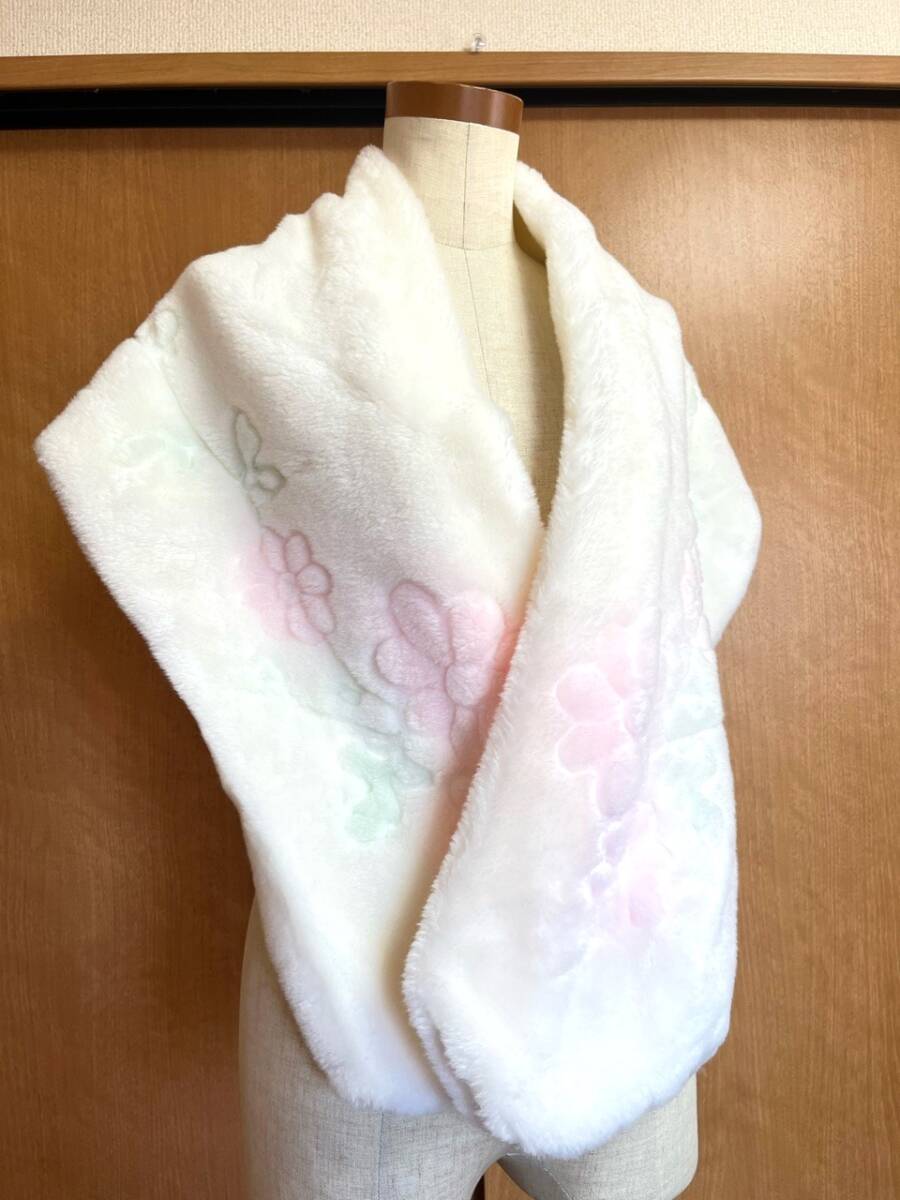 0027★ショール*ファー*白*長さ146cm*花柄*模様*成人式*防寒*着物*和装小物*和服*和風*レトロ*アンティーク*レディース★