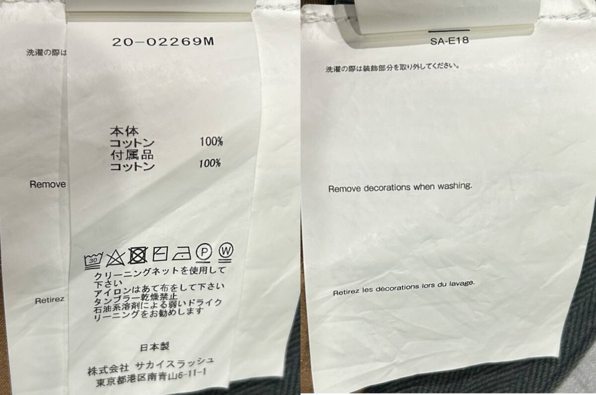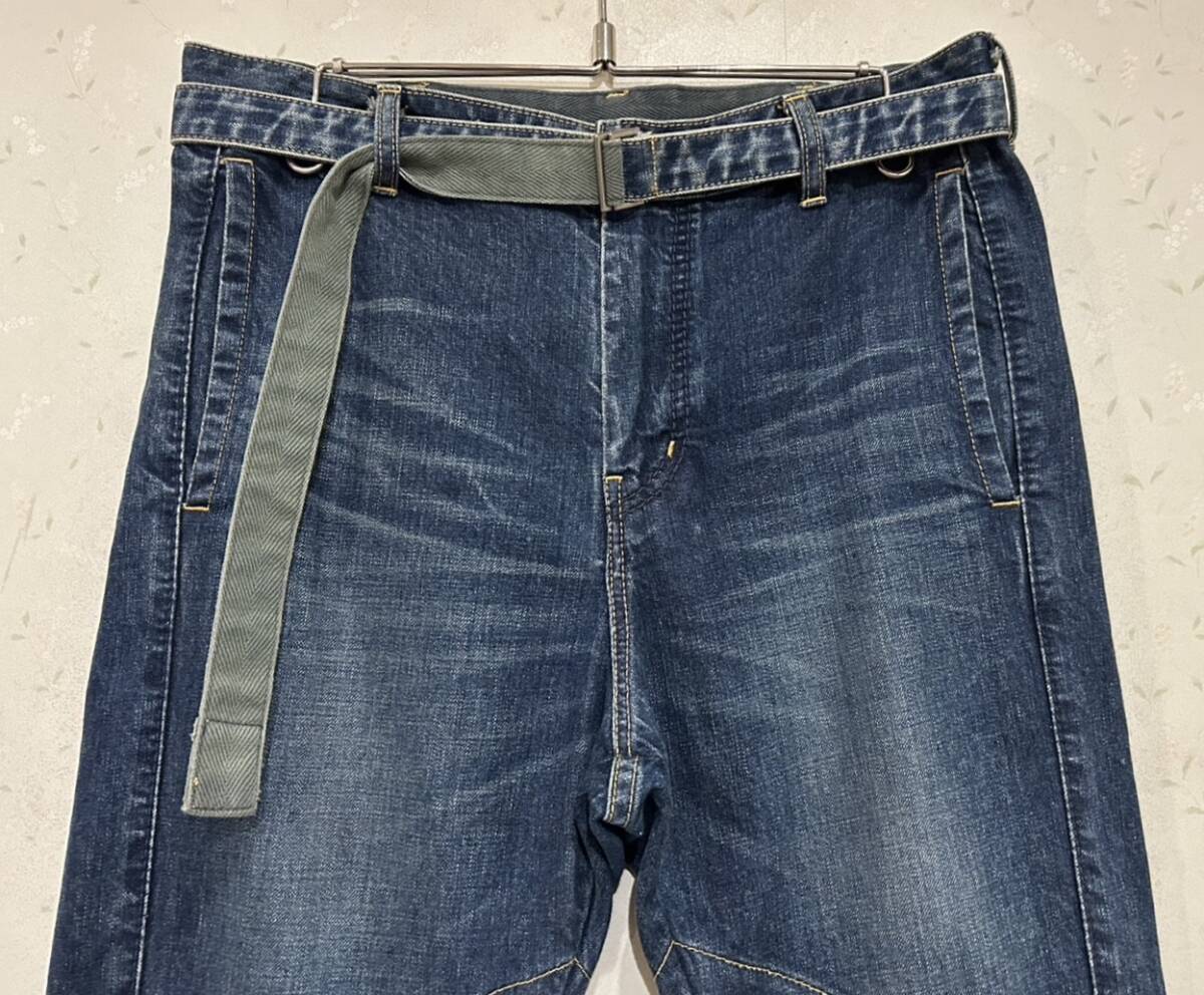 *サカイ sacai バイカー デニムパンツ ファスナースリット ベルテッド デニムパンツ 2         BJBD.AB