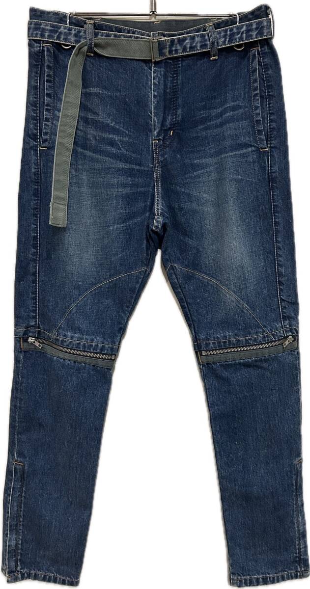 *サカイ sacai バイカー デニムパンツ ファスナースリット ベルテッド デニムパンツ 2     BJBD.AB