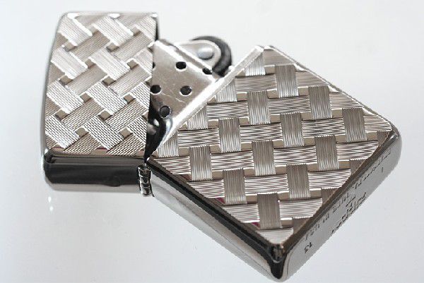 通常の1.5倍の厚みを持つアーマーケースだからこそ許される超深彫加工。どこから見ても煌びやかなデザインで、光の反射を見て楽しめるZippoです。さらに、贅沢な両面加工!編み目上に彫刻されたデザインは、実際に編み込まれたように見え立体感がGood!!男女ともにお勧めです。