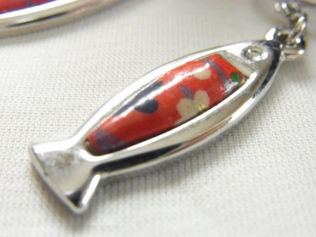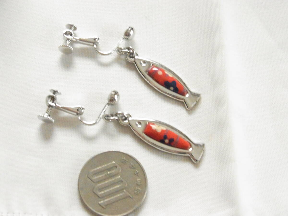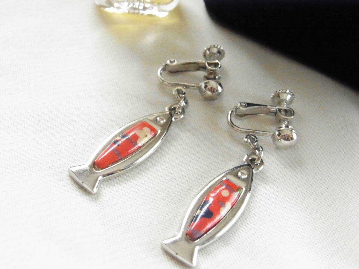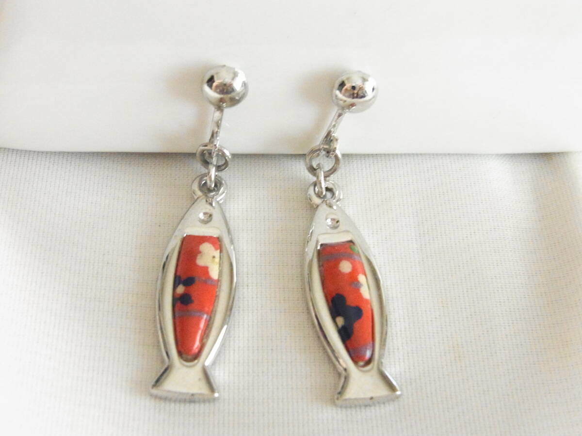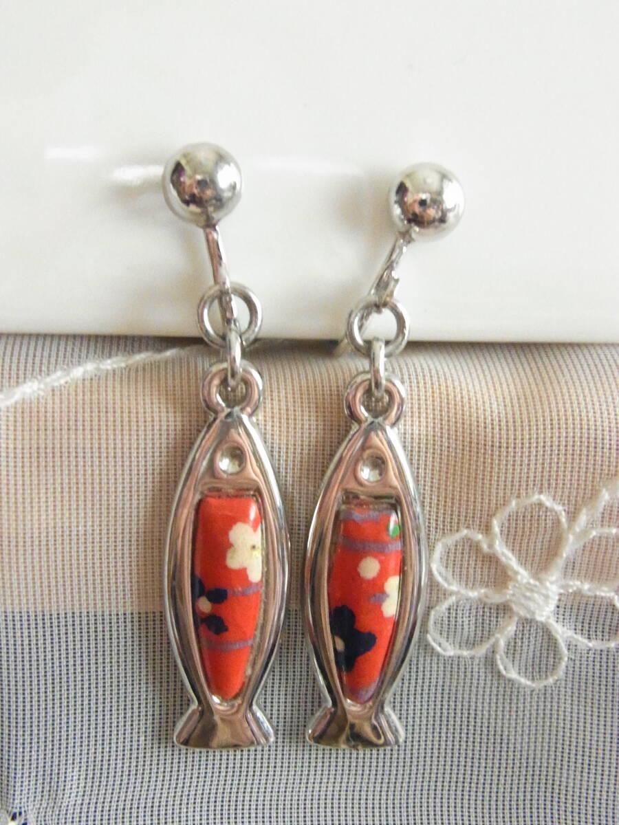 ★ビンテージ/ヴィンテージ 可愛らしい和モダン調 お魚さんのモチーフ 赤系の和柄のお魚 フィッシュ 揺れるデザイン イヤリング
