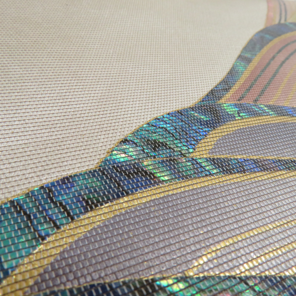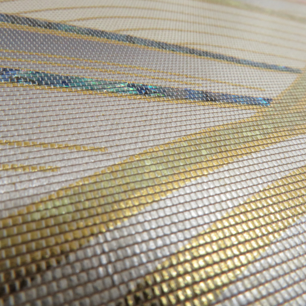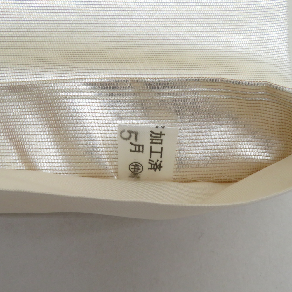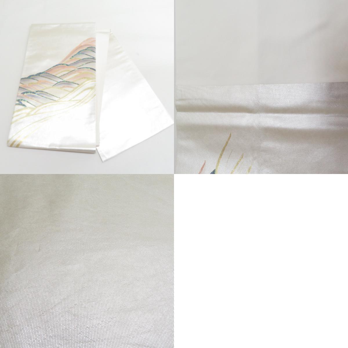 | 袋帯 正絹 螺鈿入り 波模様 パール系 ゴールドx白xピンクベージュx多色 お太鼓柄 正絹 仕立て上がり 着物帯 長さ440cm |