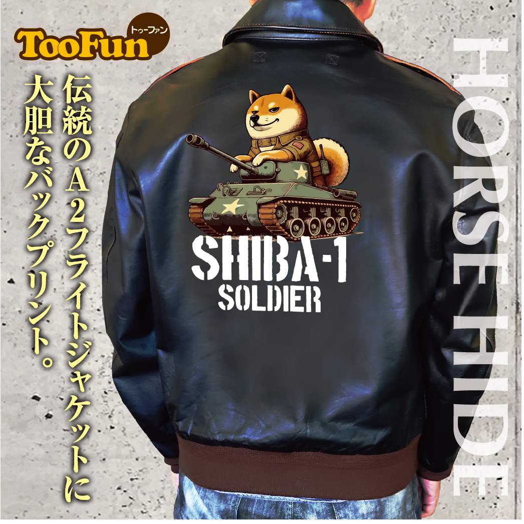 A2ジャケットは、秋冬のカジュアルスタイルにぴったりのユニセックスアウターです。伝統的なA-2フライトジャケットのデザインに、ユーモラスな柴犬のバックプリントが施され、ミリタリー感と遊び心を融合させています。ホースハイドを使用したこのジャケットは、耐久性と高級感を兼ね備え、日常のコーディネートを特別なものに変えます。大砲や戦車のモチーフが、個性的なスタイルを演出します。※画像はイメージとなり、実際とは多少異なりますので予めご了承ください。※実際にお持ちのジャケットとサイズ表をよくご確認の上ご購入ください。※受注生産となるため、返品、交換はご遠慮ください。※料金は1枚での価格となっております。