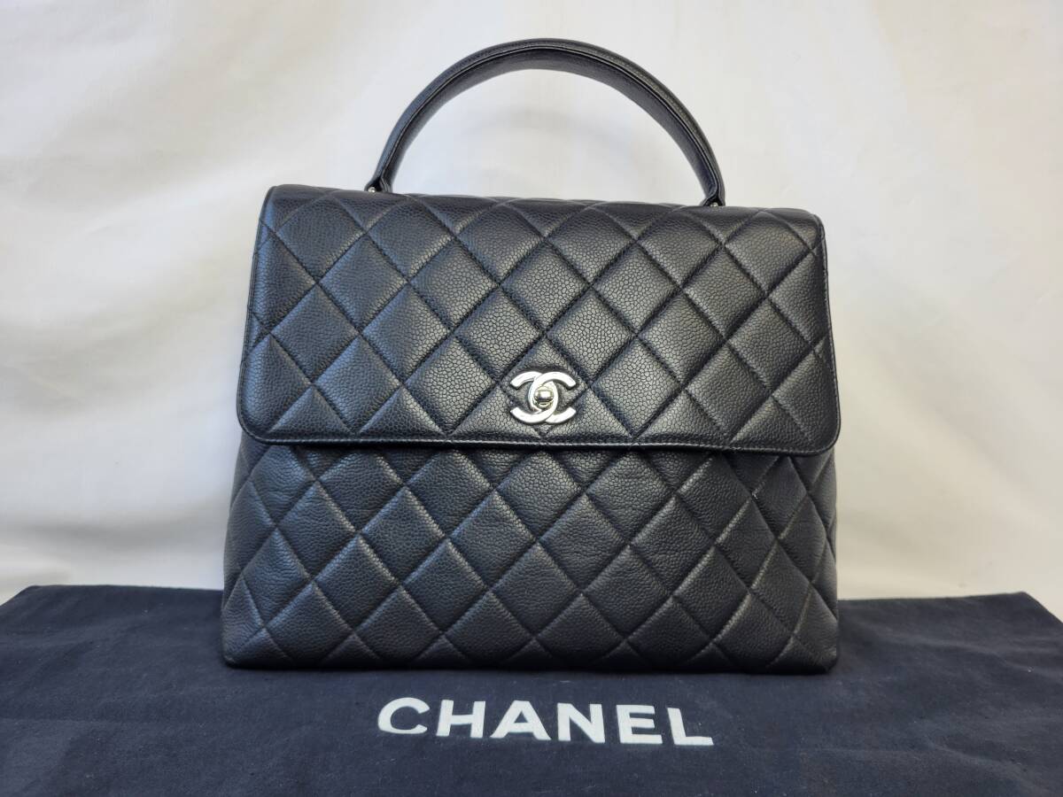 シャネル マトラッセ キャビアスキン ターンロック ケリー型 ハンドバッグ ブラック CHANEL