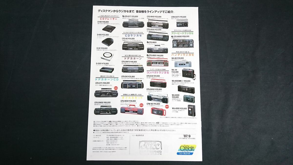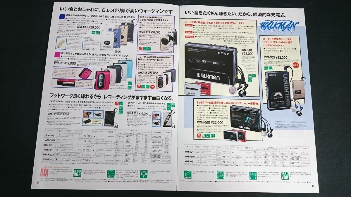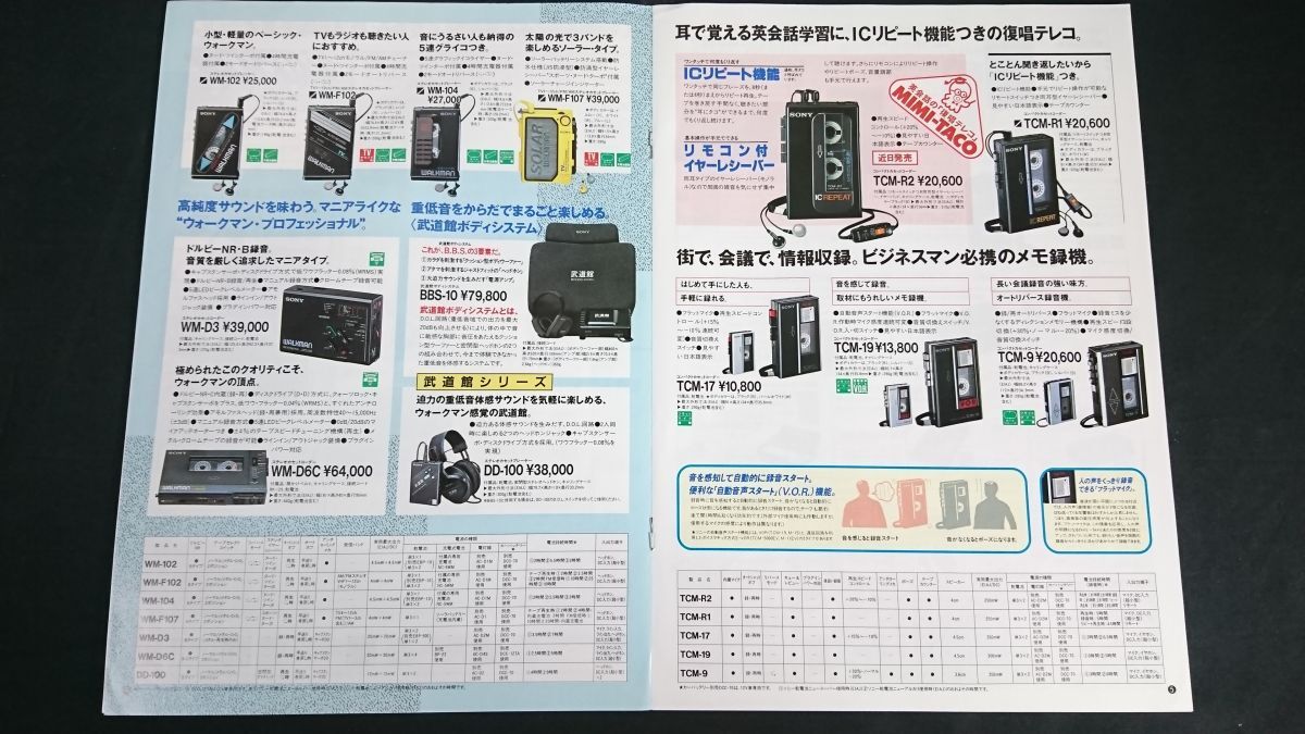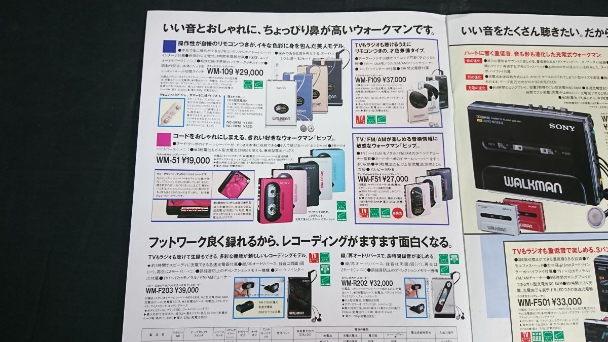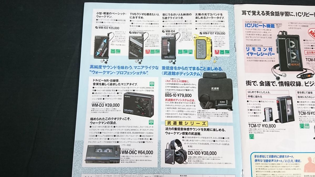 | 【昭和レトロ】『SONY(ソニー)カジュアルオーディオ ウォークマン/テープレコーダー総合カタログ 1987年9月』ソニー株式会社/WM-109/WM-51/WM-501/WM-D3/DD-100/WM-D6C | |