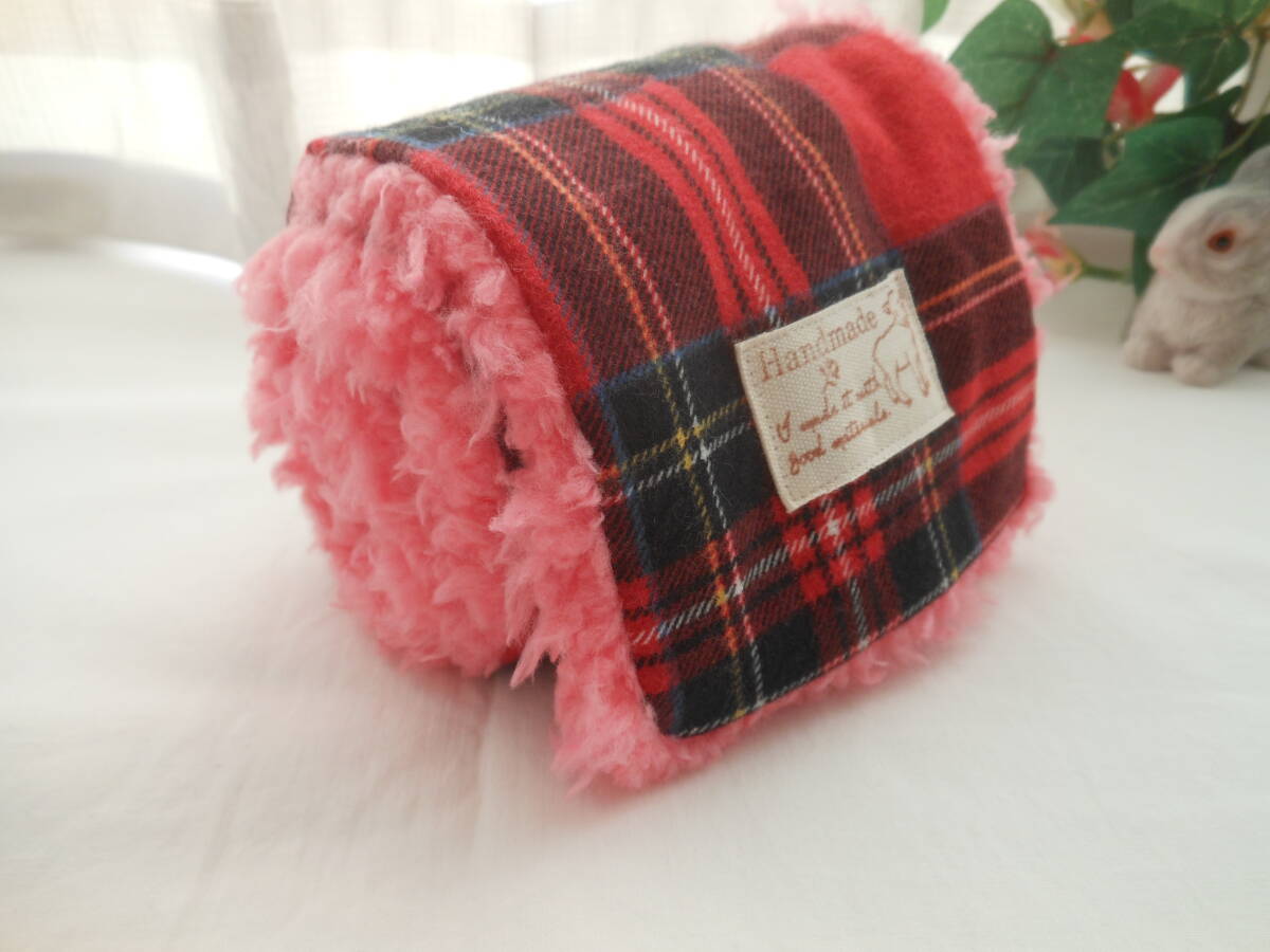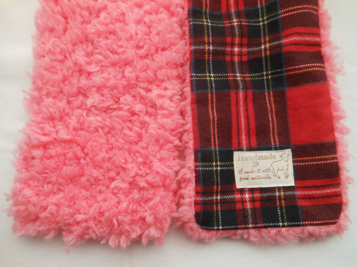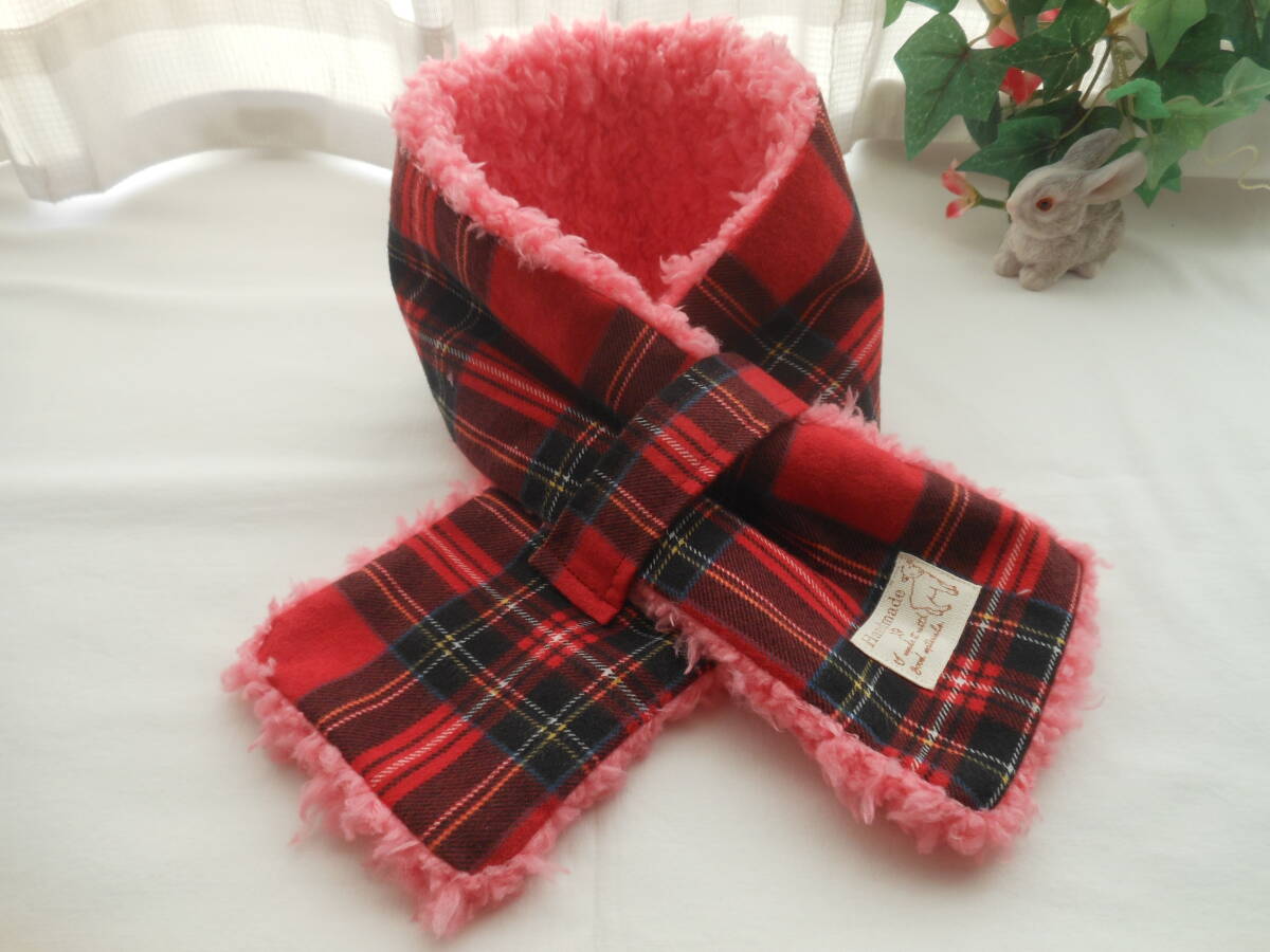 赤チェック * プードルボア マフラー 子供 ♪ ハンドメイド