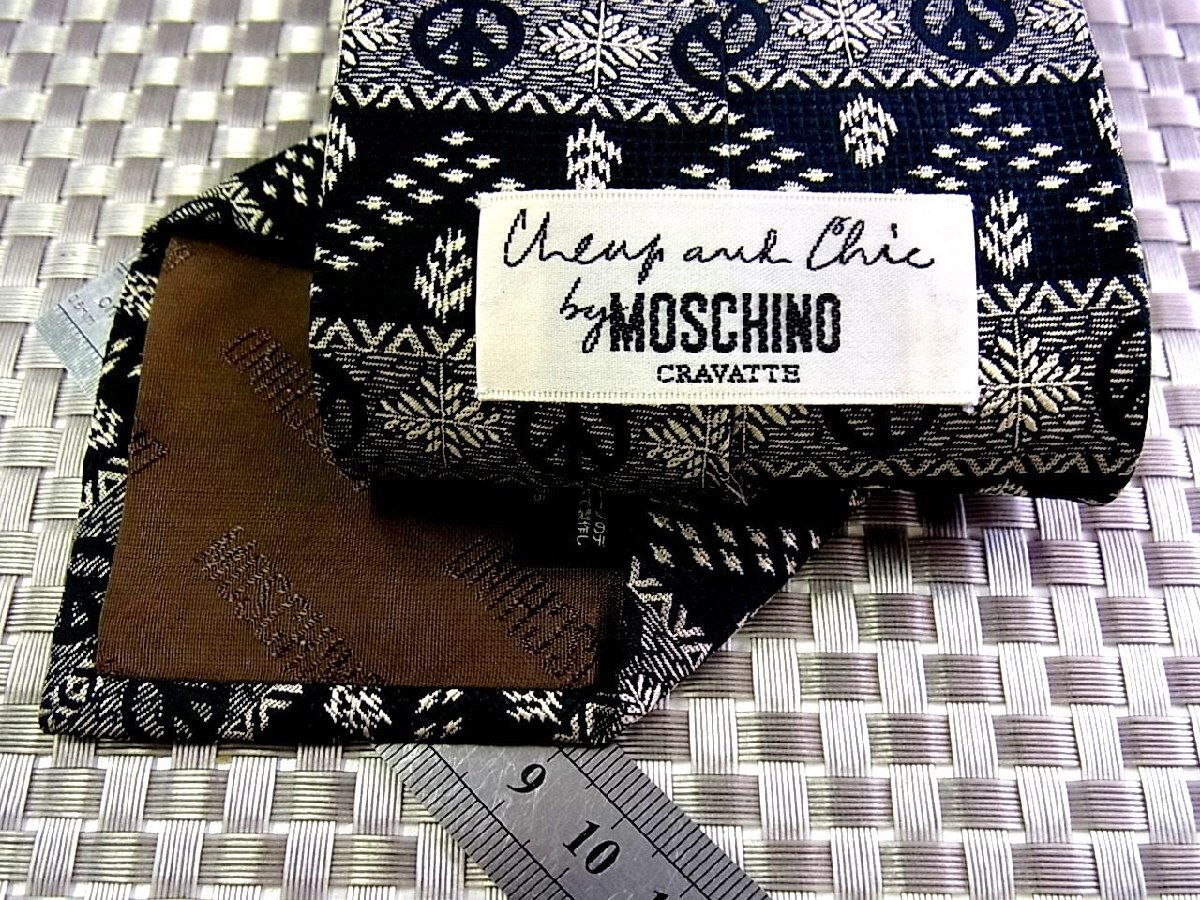 ★RB3373★【刺繍 ピースマーク 柄】モスキーノ【美品】ネクタイ
