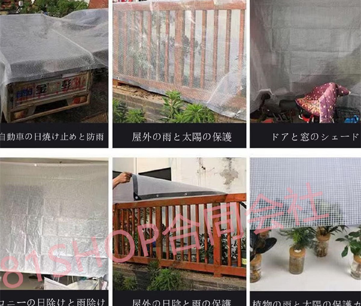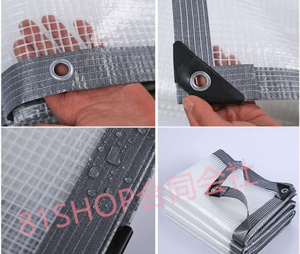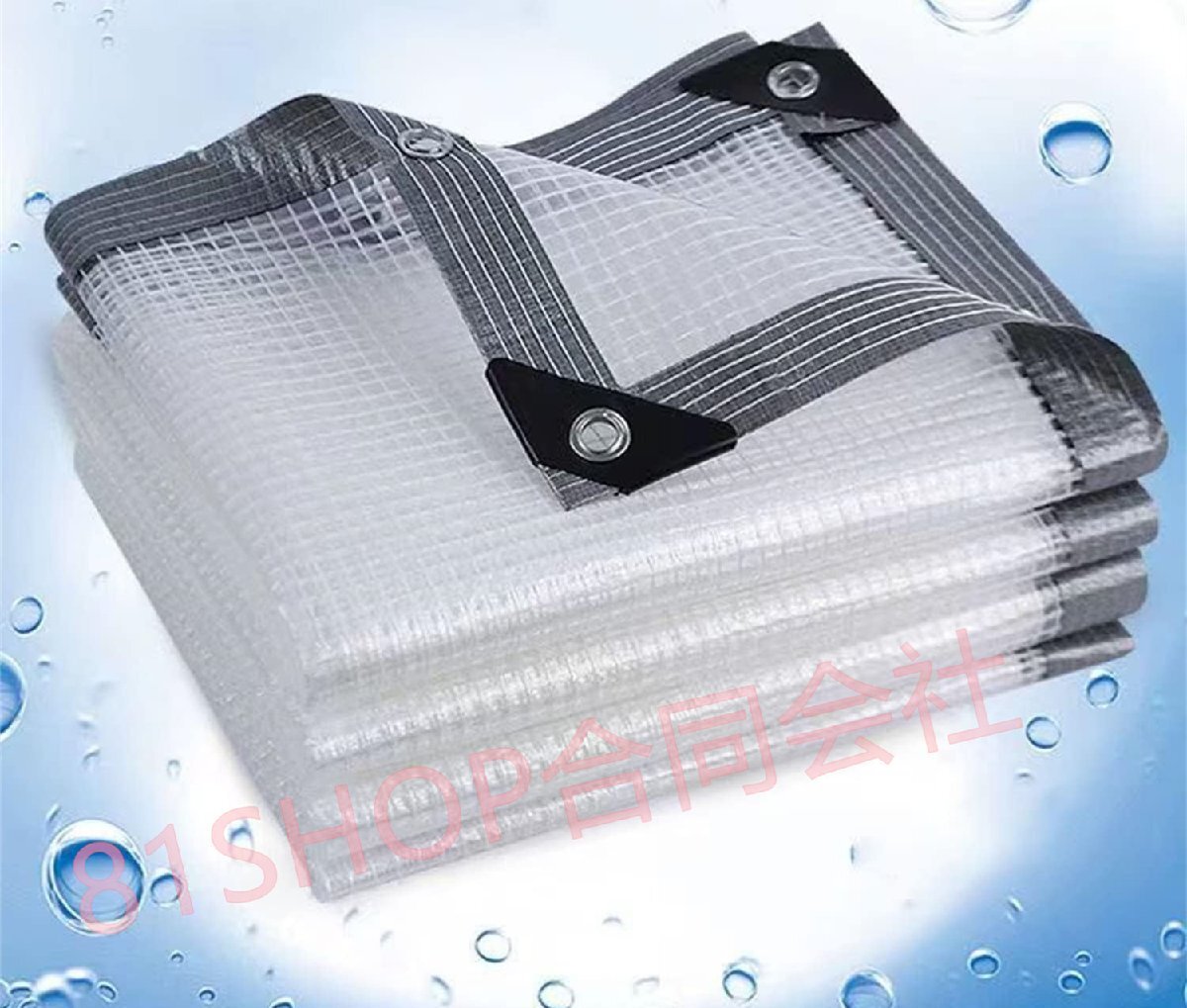 「81SHOP」メッシュ透明雨よけシート 防水透明シート PE 厚さ0.30mm 透明 ビニールシート クリアタープ 雨よけシート プラスチサイズ 7X8M