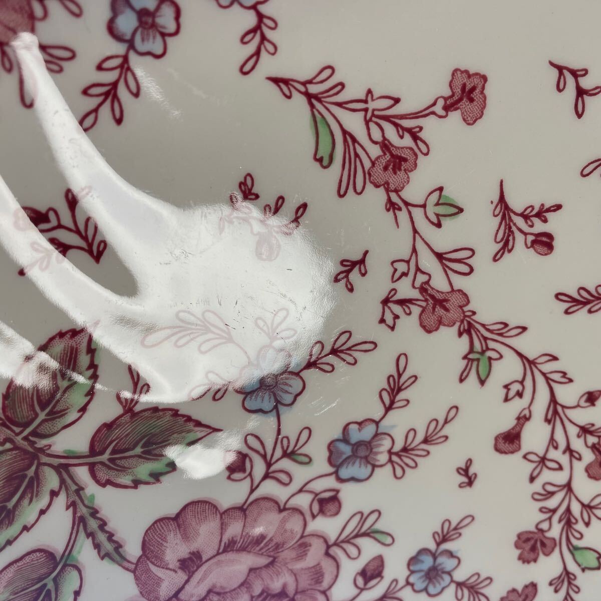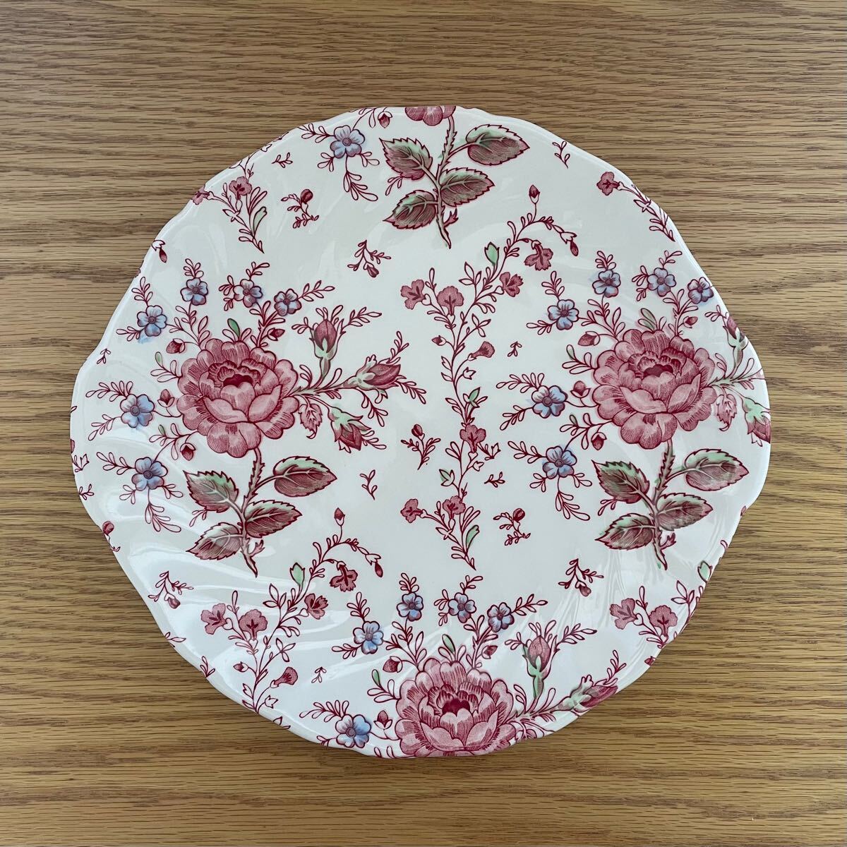 イギリスの陶磁器メーカーJohnson Brothersの人気シリーズRose Chintzの持ち手付きプレートです。