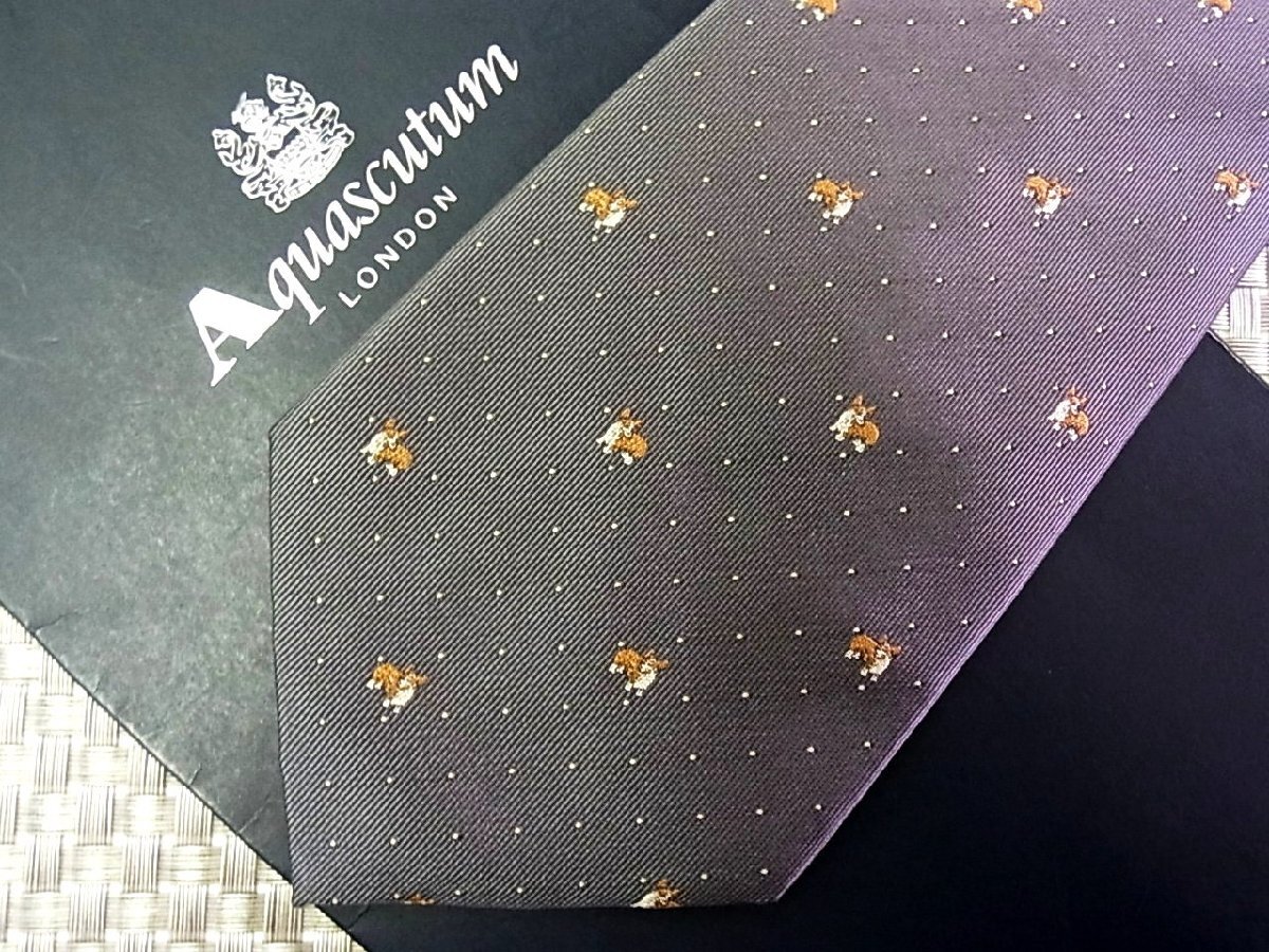 ♪36242C♪良品【犬 コーギー 動物 ドット 柄】アクアスキュータム【Aquascutum】ネクタイ