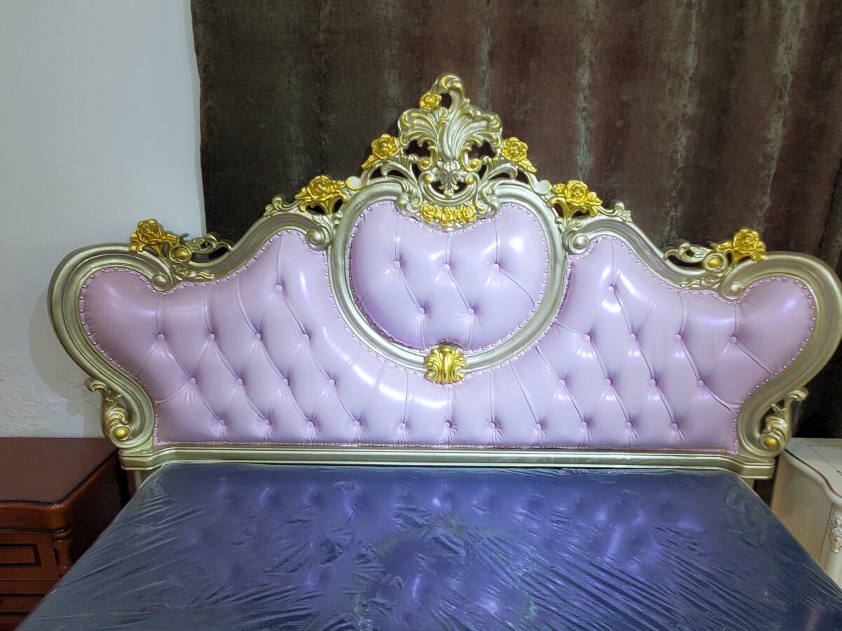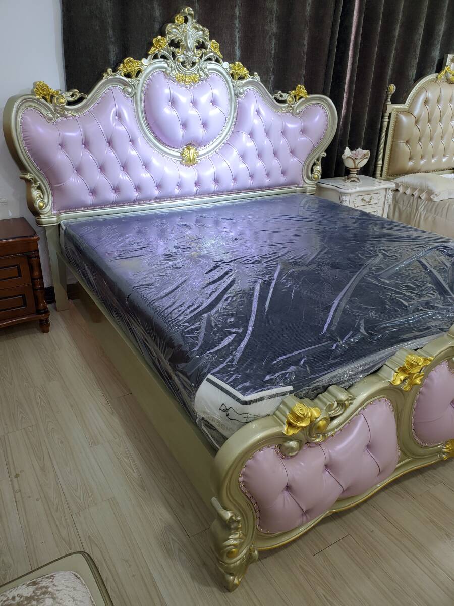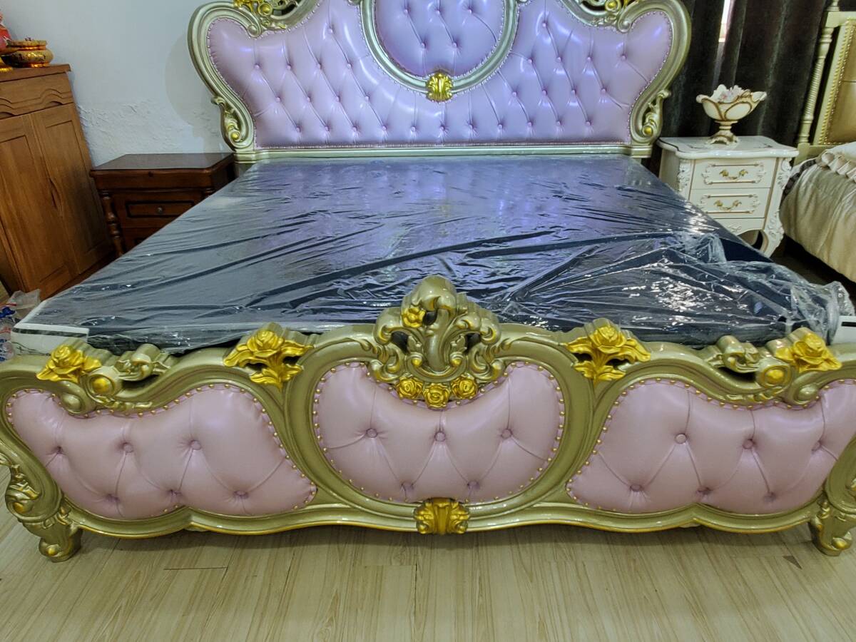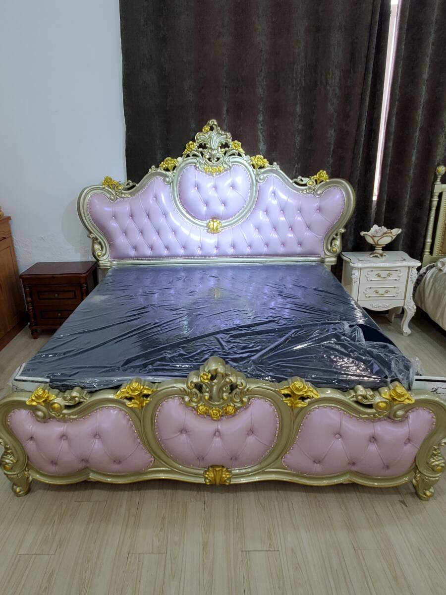 サイズベッドフレーム本体 幅220cm~240cm高さ150cm~170cm奥行き220~240cmマットレスサイズ :W 180cm ~200cm長さ 200 cm*若干の誤差はご了承ください。素材 天然木、表張材本革、裏張材(合成皮革)、高密度ウレタンソファーにあるクッションは付属品です本革防水 防汚、耐久性高密度ウレタン一般的なソファには20〜30kg/程度の密度のウレタンが使用されることが多く、それより密度が高いものは「高密度ウレタン」と呼ばれます。職人によって精細に施された優美な彫刻。 その一つ一つが手彫り仕上げで、味わい深い魅力のある逸品です。脚部はしなやかな猫脚のように、美しい曲線を描いたフォルムです。張地は超繊維革張りになっており透かし彫りに仕上がっております。日々のお手入れがしやすい商品です。木部には繊細な彫刻が施されており、気品溢れる空間を演出します。彫刻部分はプロの職人によるオールハンドメイド仕上げで
