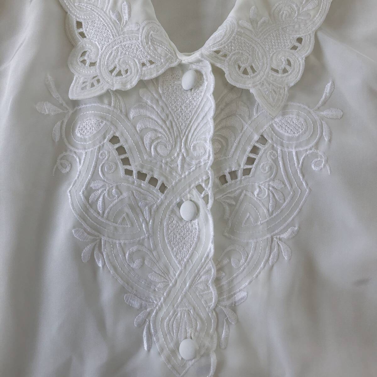 Y1412 Gpsal あいせる レディース トップス ブラウス 長袖 薄手 刺繍 ホワイト 白 シンプル フェミニン 昭和レトロ おしゃれ 春秋