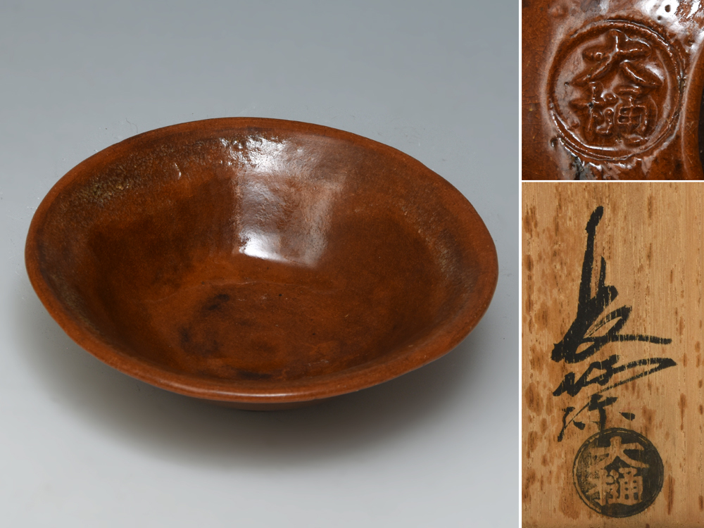 大樋長阿弥(造)大樋焼 飴釉 平茶碗 共箱 共布 抹茶碗 茶碗 茶道具 |
