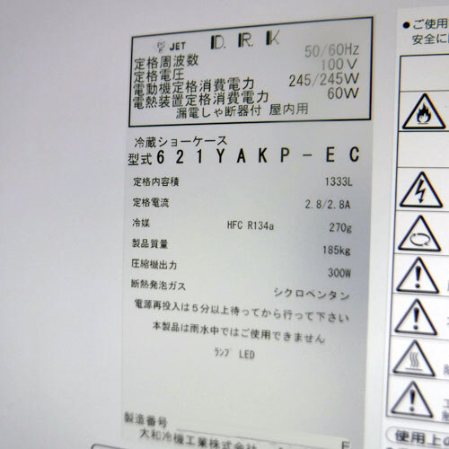 【業界最長1年保証】冷蔵リーチインショーケーススイング扉 大和冷機 621YAKP-EC 業務用 中古/送料別途見積