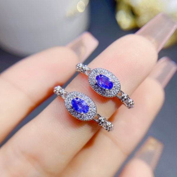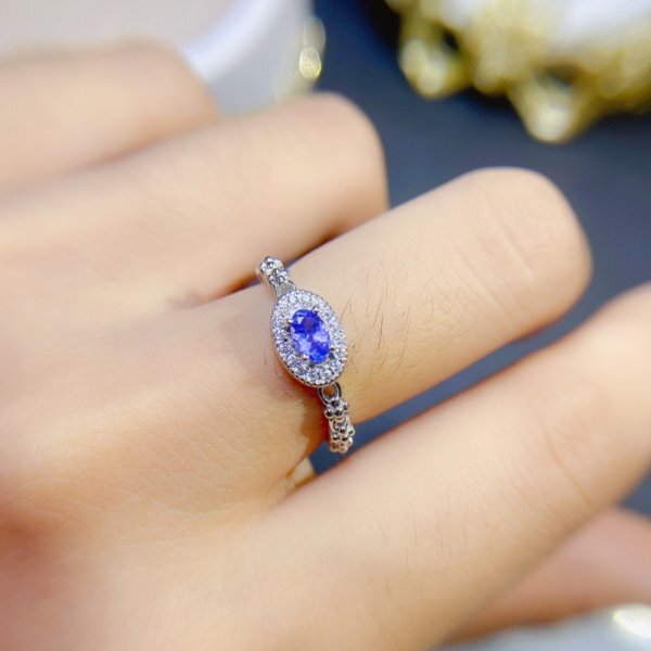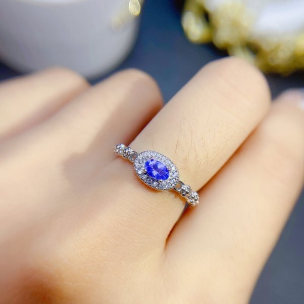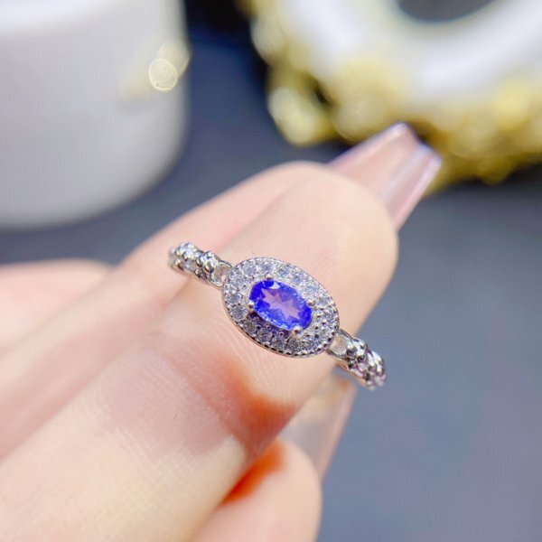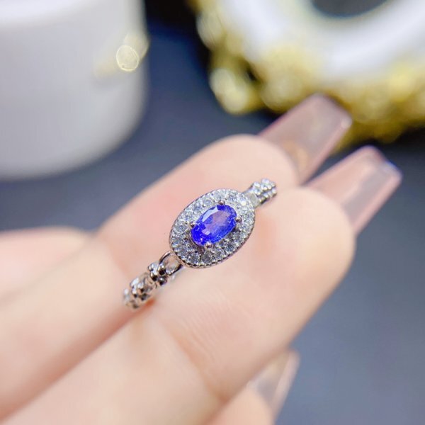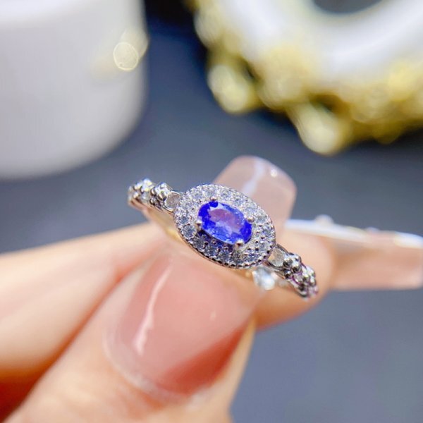 女性用天然タンザナイトリング、3×5mm、シルバー925ジュエリー、18Kゴールドメッキ、高級石