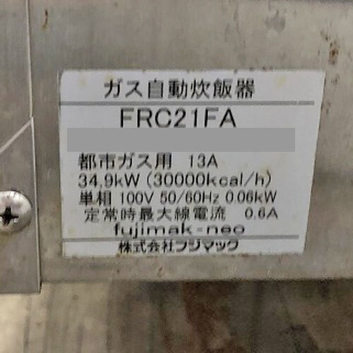 【業界最長1年保証】ガス自動炊飯器 フジマック FRC21FA 都市ガス 業務用 中古/送料別途見積