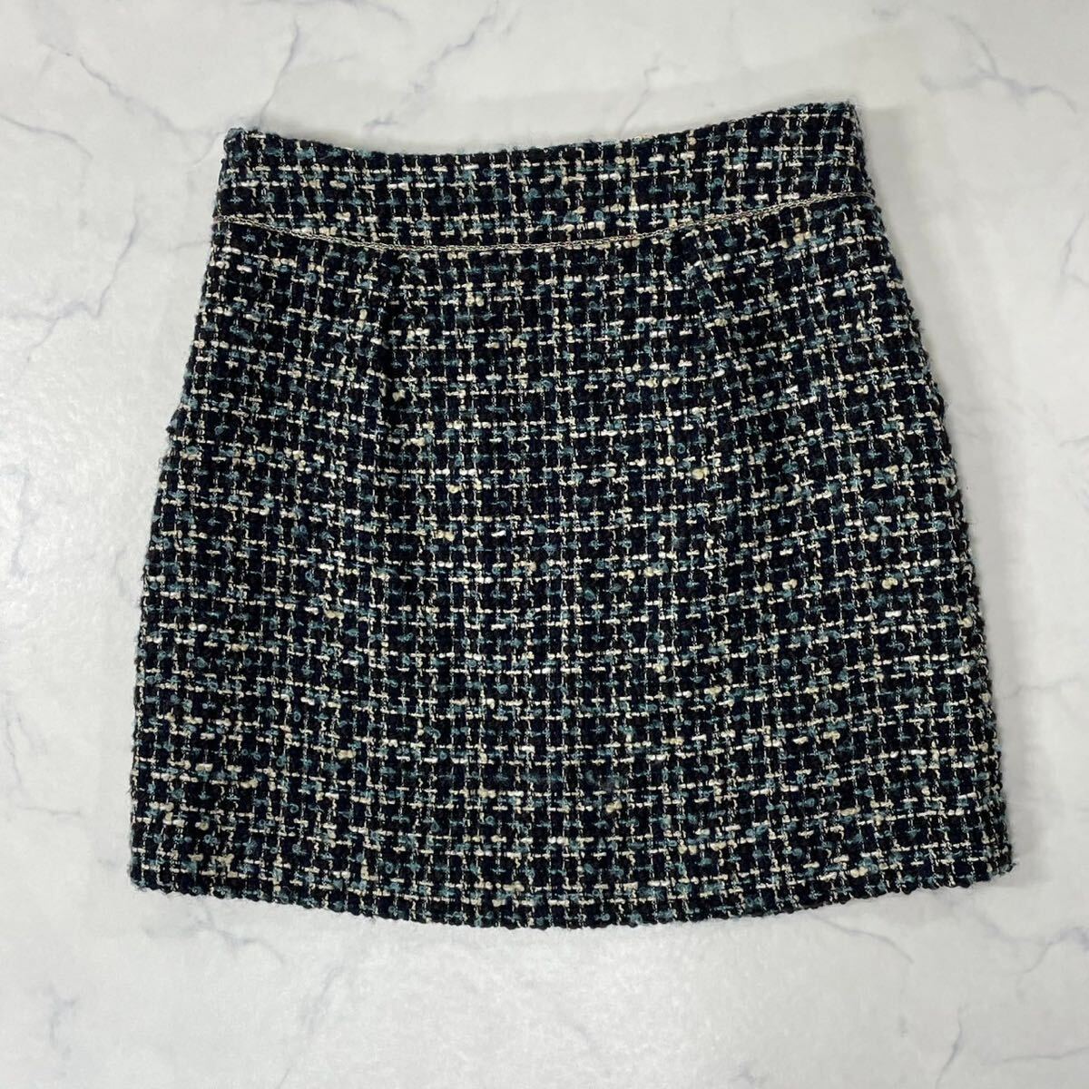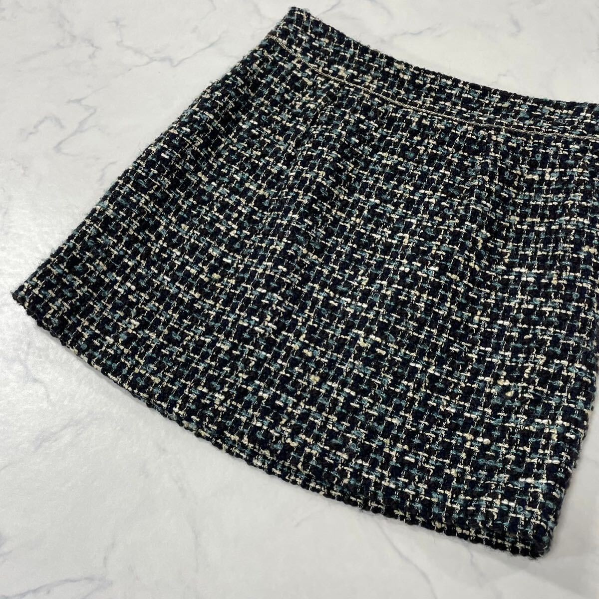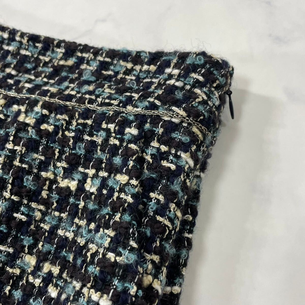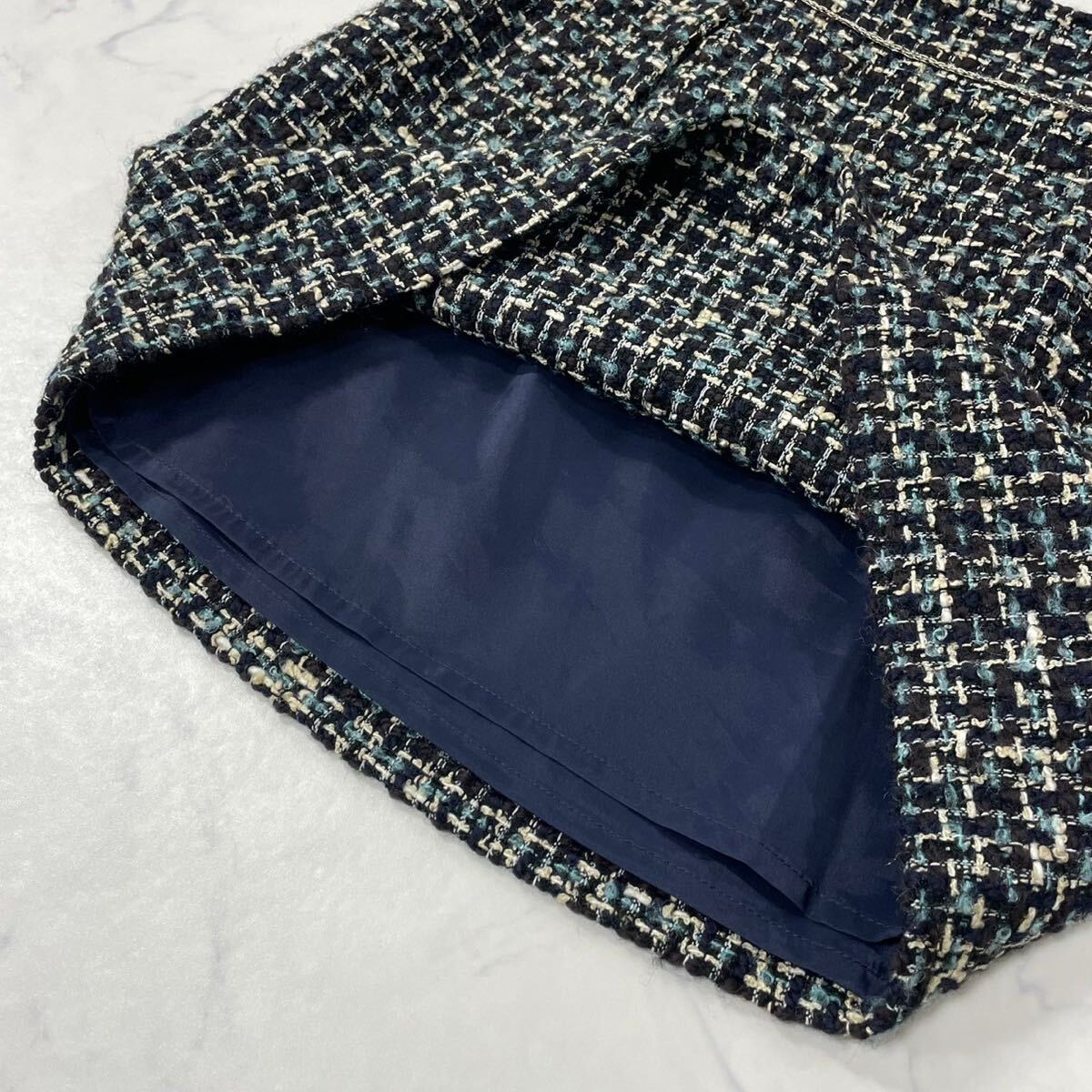 日本製 ツイード 裏地付き タック ジップ ウール混 タイト ミニ スカート