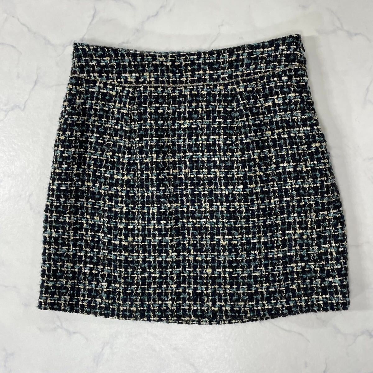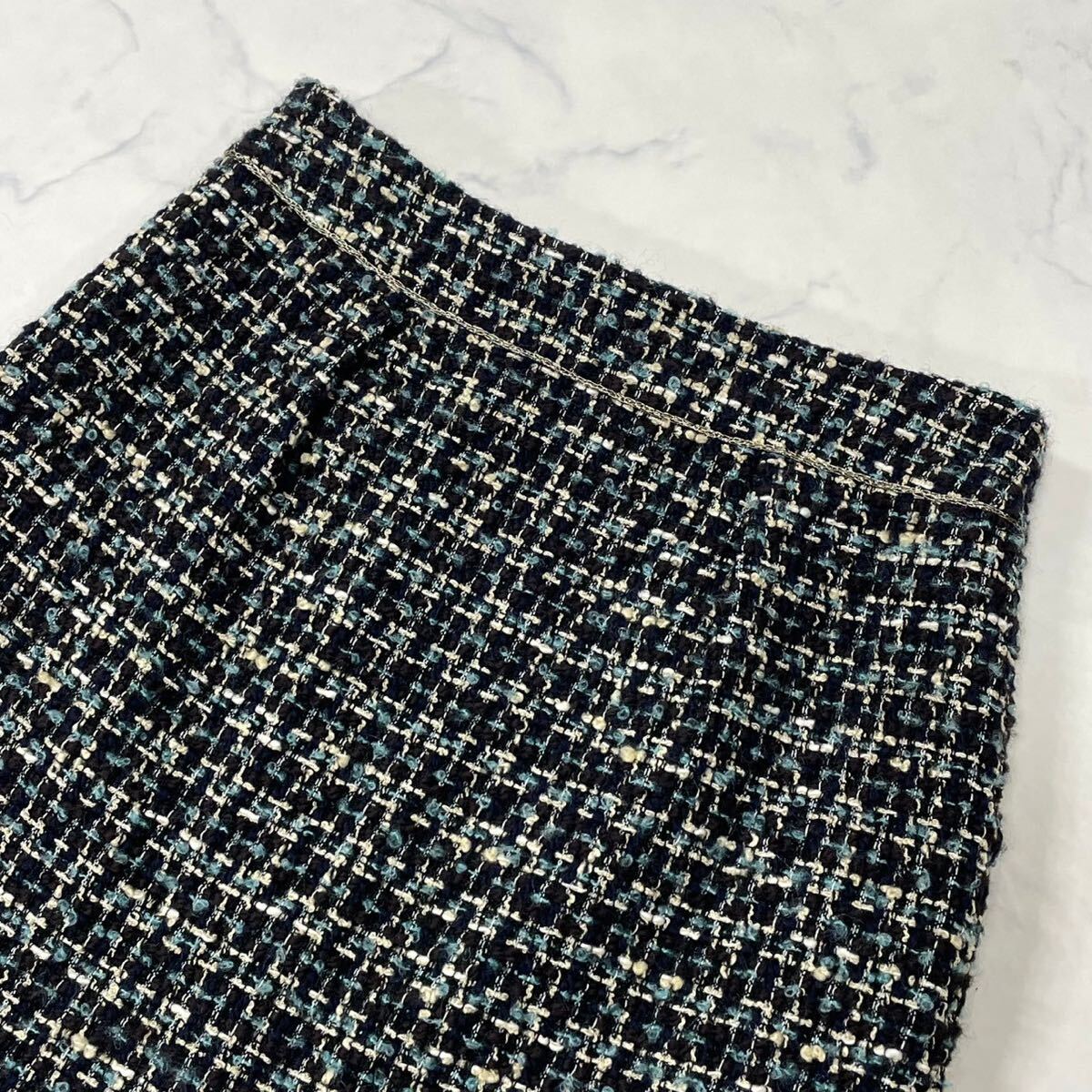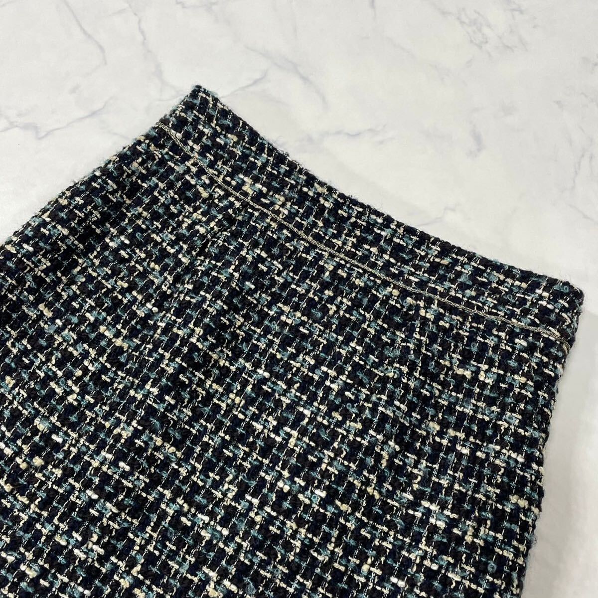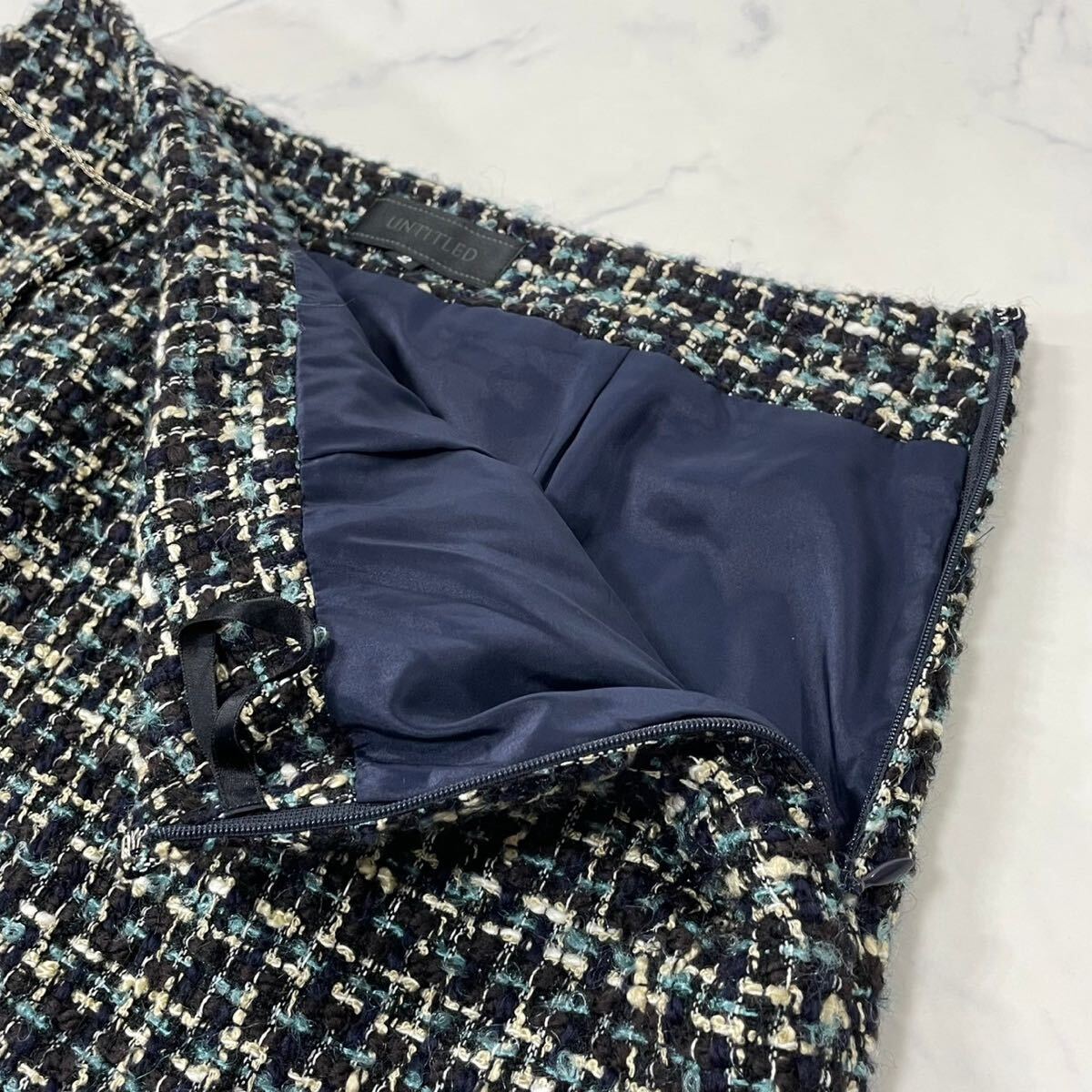 日本製 ツイード 裏地付き タック ジップ ウール混 タイト ミニ スカート