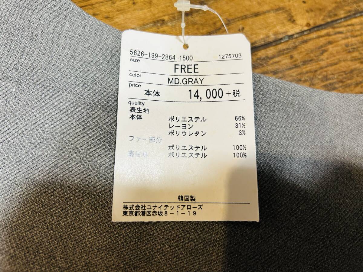 A3253 ユナイテッドアローズ UNITED ARROWS◆長袖 ワンピース 秋冬 フリーサイズ グレー 未使用新品 定価14,000円