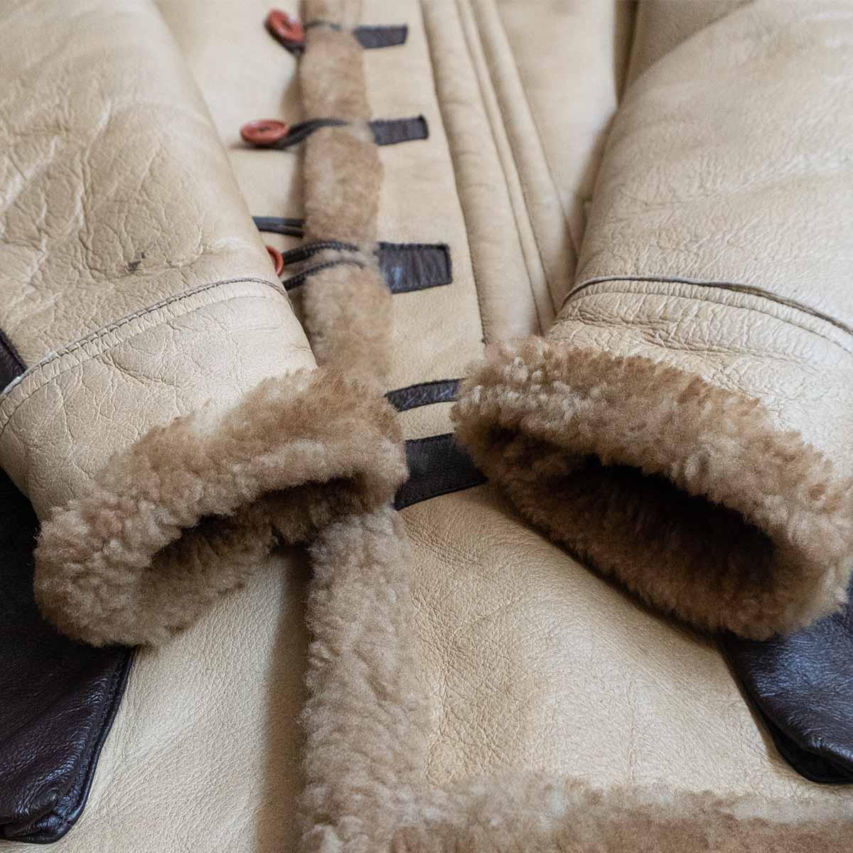 ボディには肉厚ながらモチっとした弾力性を持つ上質のシープスキン(羊革)が使用されております。裏地にはふかふかのムートンボアが敷き詰められ最高の着心地・防寒性を誇りますお探しの方や気になる方は是非。