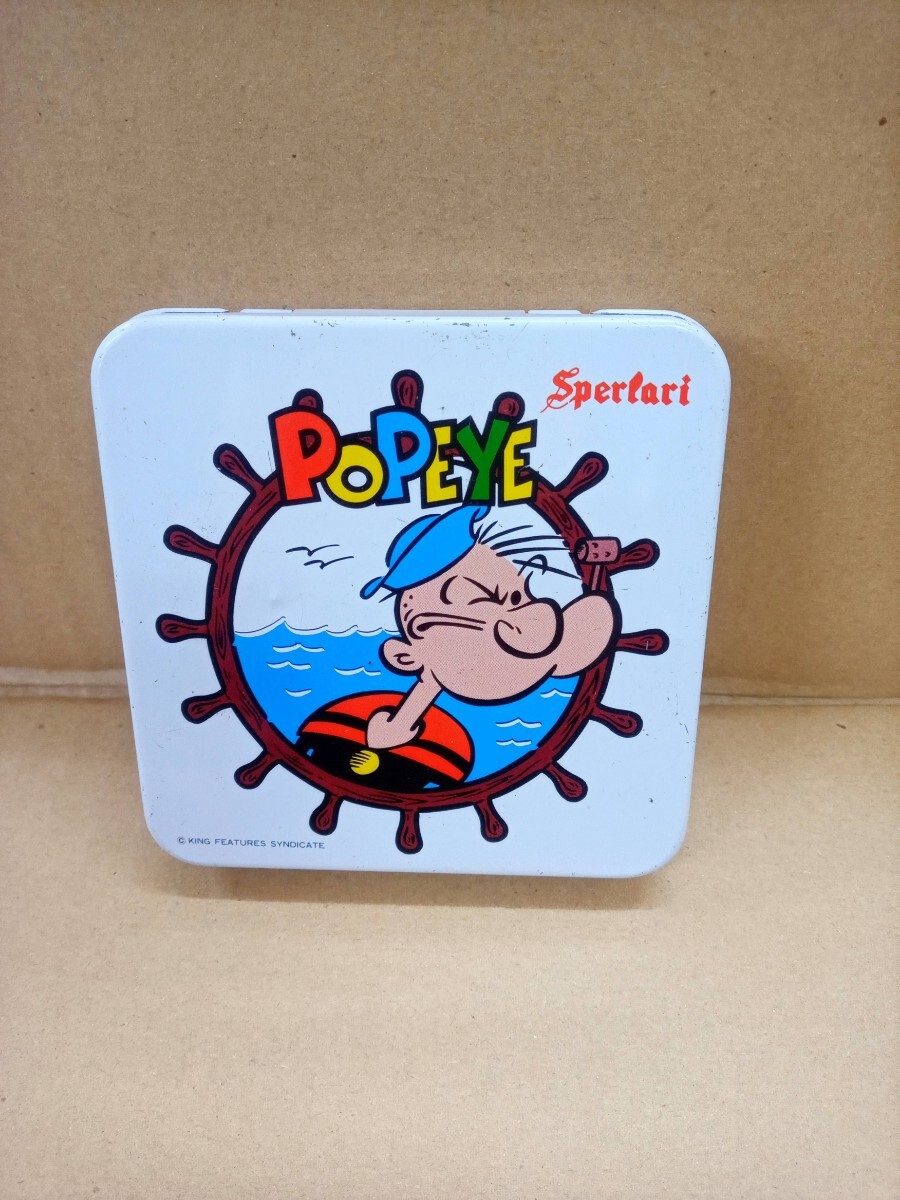 80年代のアイテムと思われます、スペラリー のキャンディ缶(缶/パッケージのみ)で、ポパイ/POPEYE とのタイアップ商品です。珍しいアイテムです。