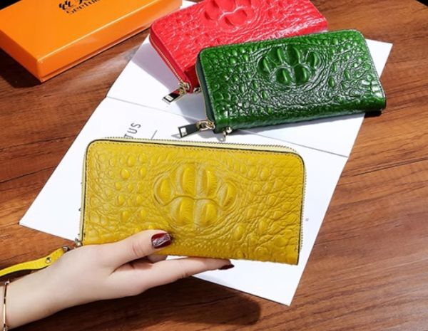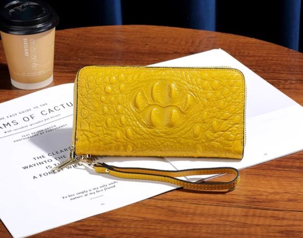 ★ロイヤル★高級 クロコダイル 柄本 人気の黄色 革ロング ジッパーハンド ウォレットフェミニン 2024新本革紙幣ホルダー フェイク 0743⑥