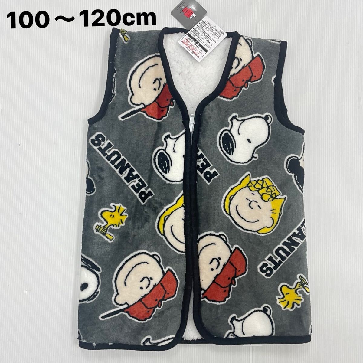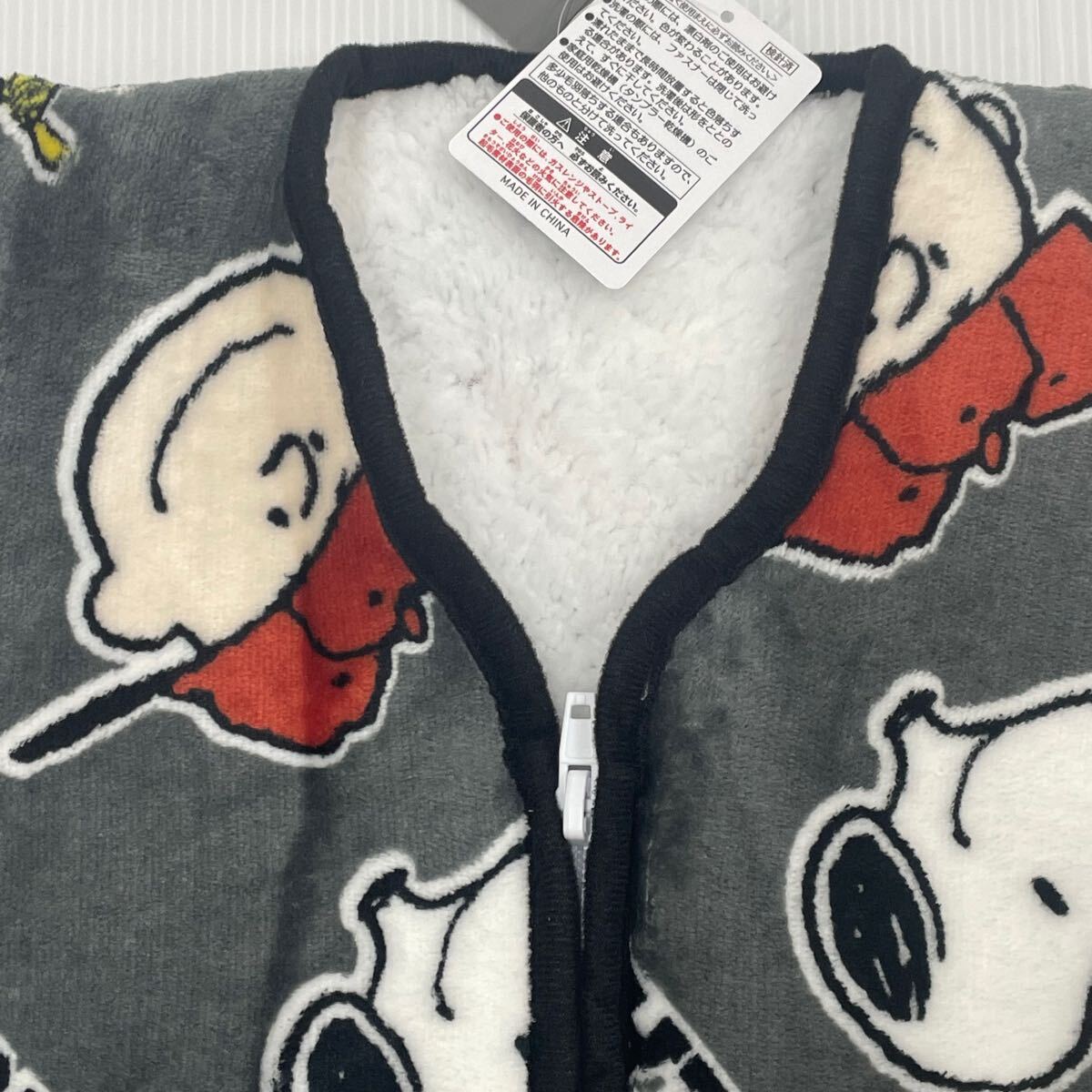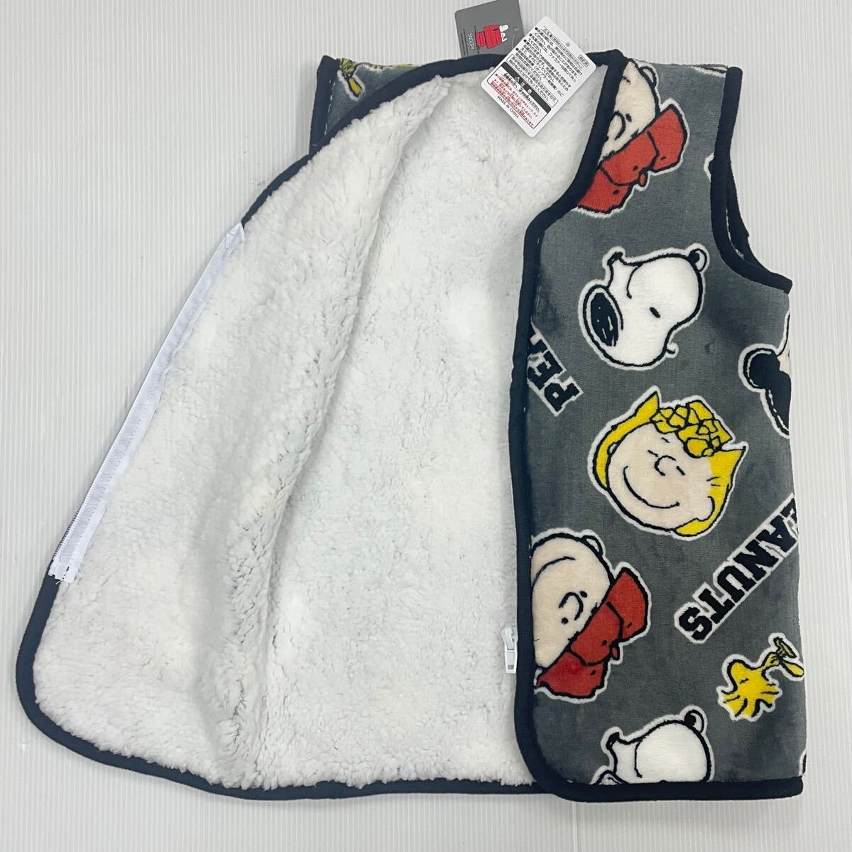 新品63502スヌーピーダークグレー キッズフランネル裏ボアスリーパー ベスト 男女兼用 あったか素材防寒前開きジップパジャマ子供100-120cm