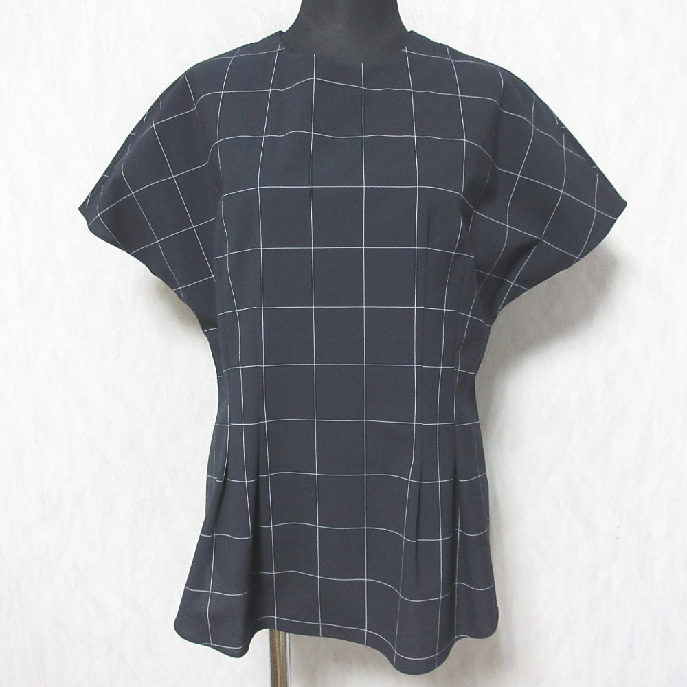 商品名:ほぼ美品 23SS M・fil エムフィル ×EFFE BEAMS エッフェビームス 別注 チェック フレンチスリーブ ブラウス プルオーバー 36 ネイビー