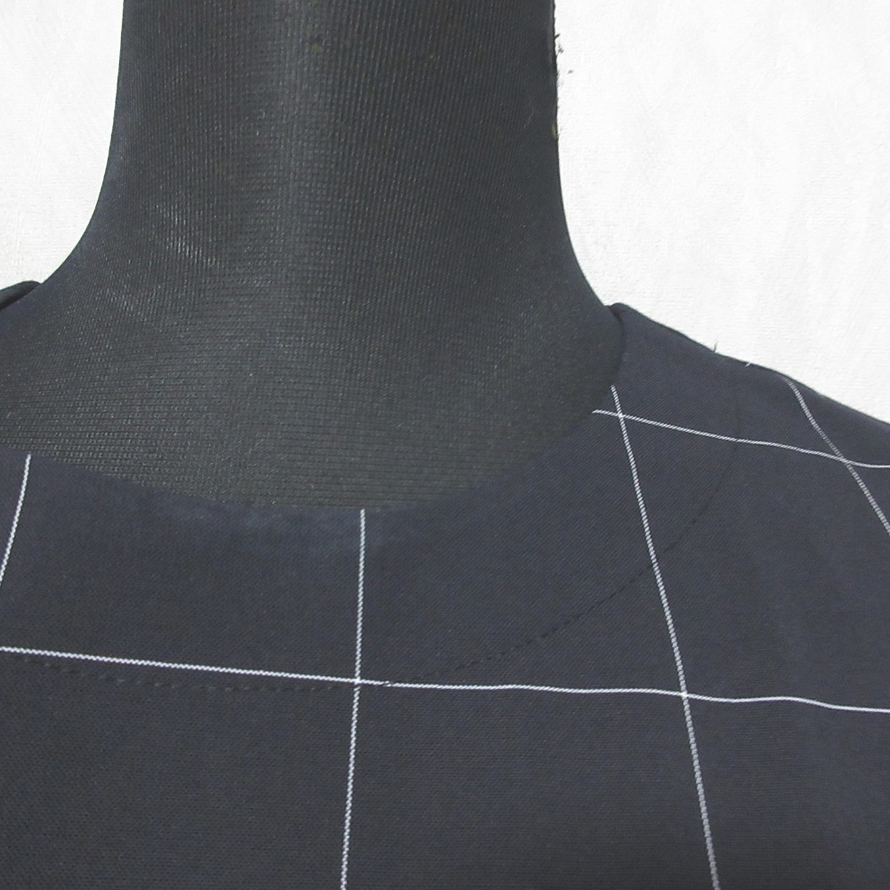 良品 23SS M・fil エムフィル ×EFFE BEAMS エッフェビームス 別注 チェック フレンチスリーブ ブラウス プルオーバー 36 ネイビー