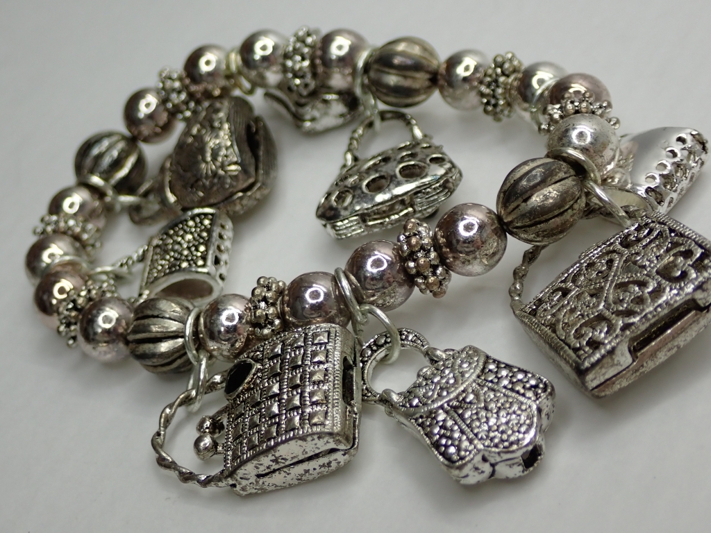 K819 ヴィンテージ バングル バッグチャーム シルバーカラー アクセサリー Vintage bangle bracelet