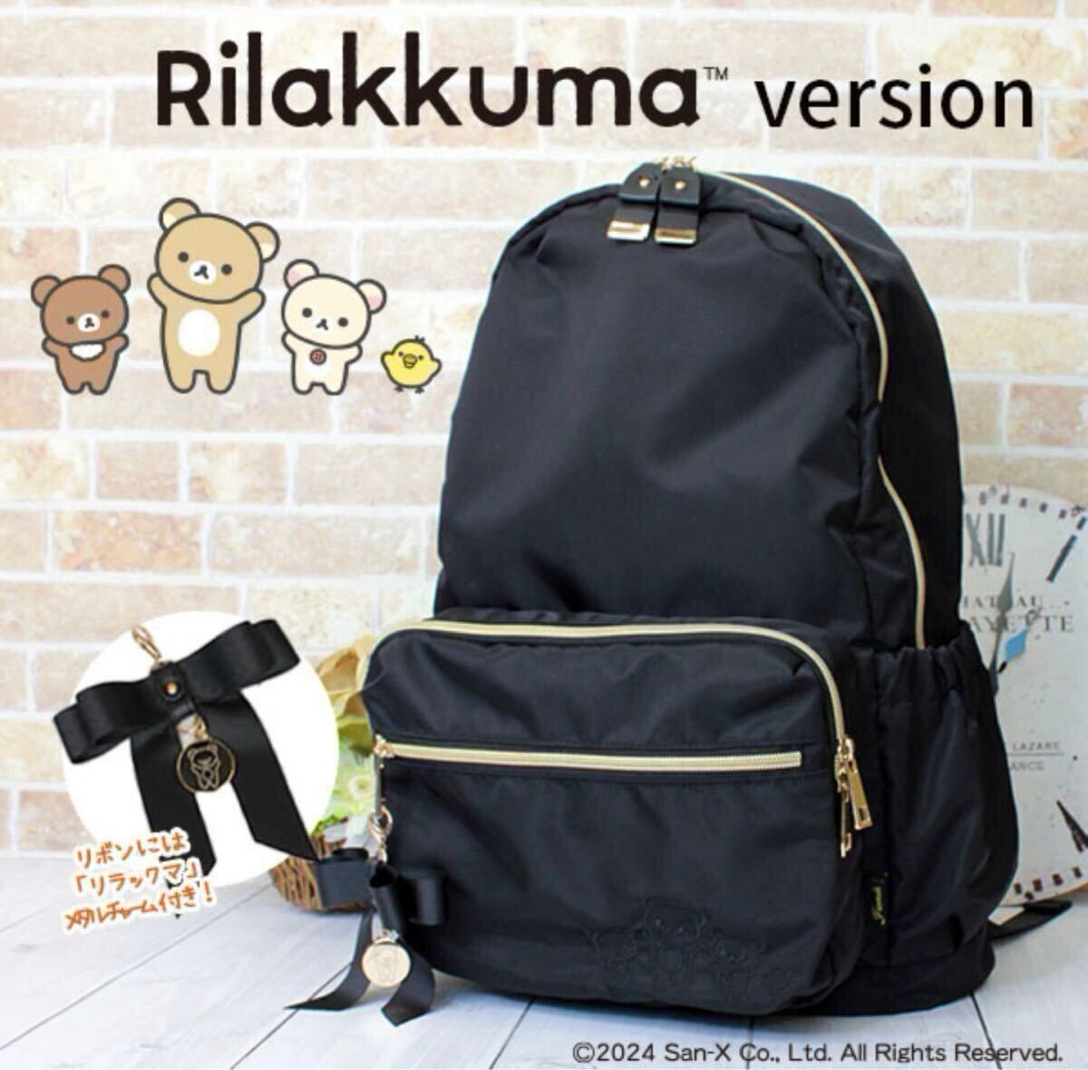 フェンテ リュック リラックマVer 総柄裏地 11ポケット 撥水仕様 リボンチャーム ナイロン マザーズバッグ リラックマ 通勤通学A4