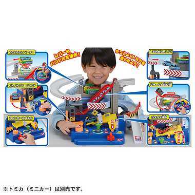 レバーやハンドルを操作してキミの手でトミカを運転!上手にコントロールしてトミカをかっこよく走らせよう!