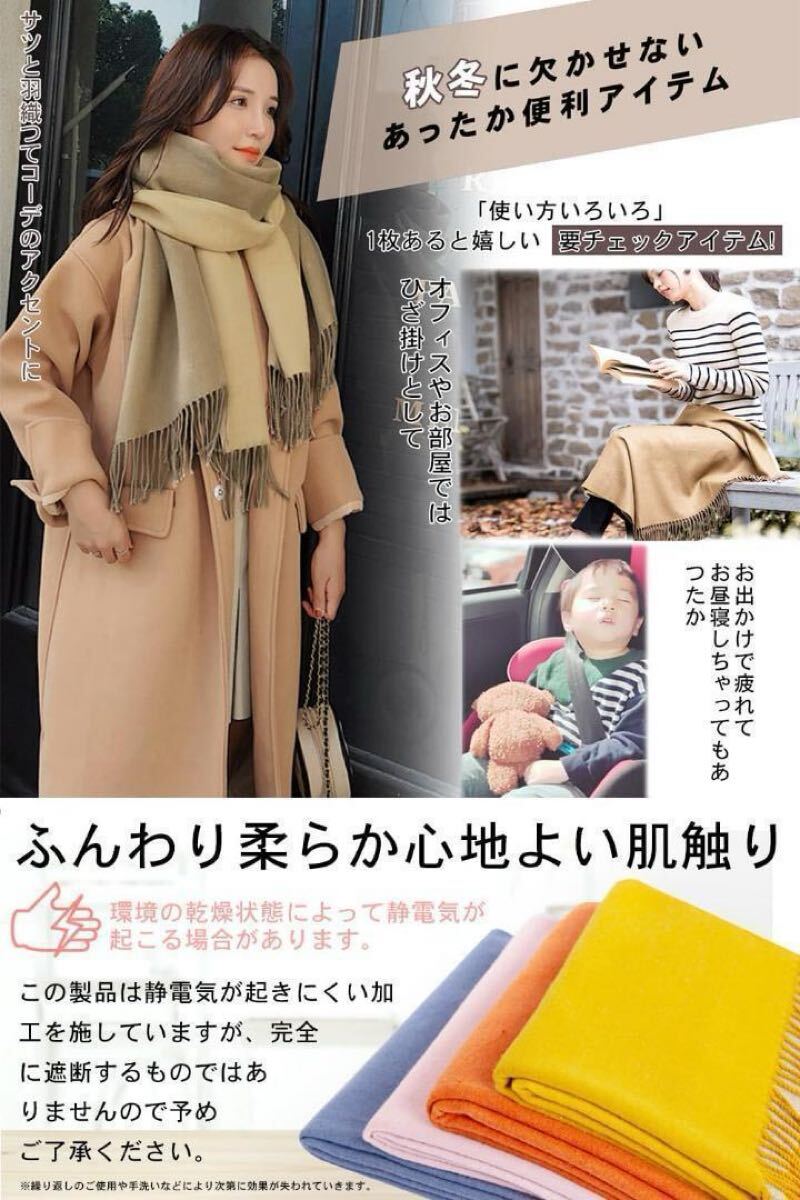 [Hoomoi] マフラー レディース 人気 カシミヤタッチ ストール 大判 マフラー ファッション 冬 厚手 両面 使える ギフトボックス付き 無地 学生 誕生日プレゼント フリンジ生地 襟巻き 秋冬定番 クリスマスプレゼント