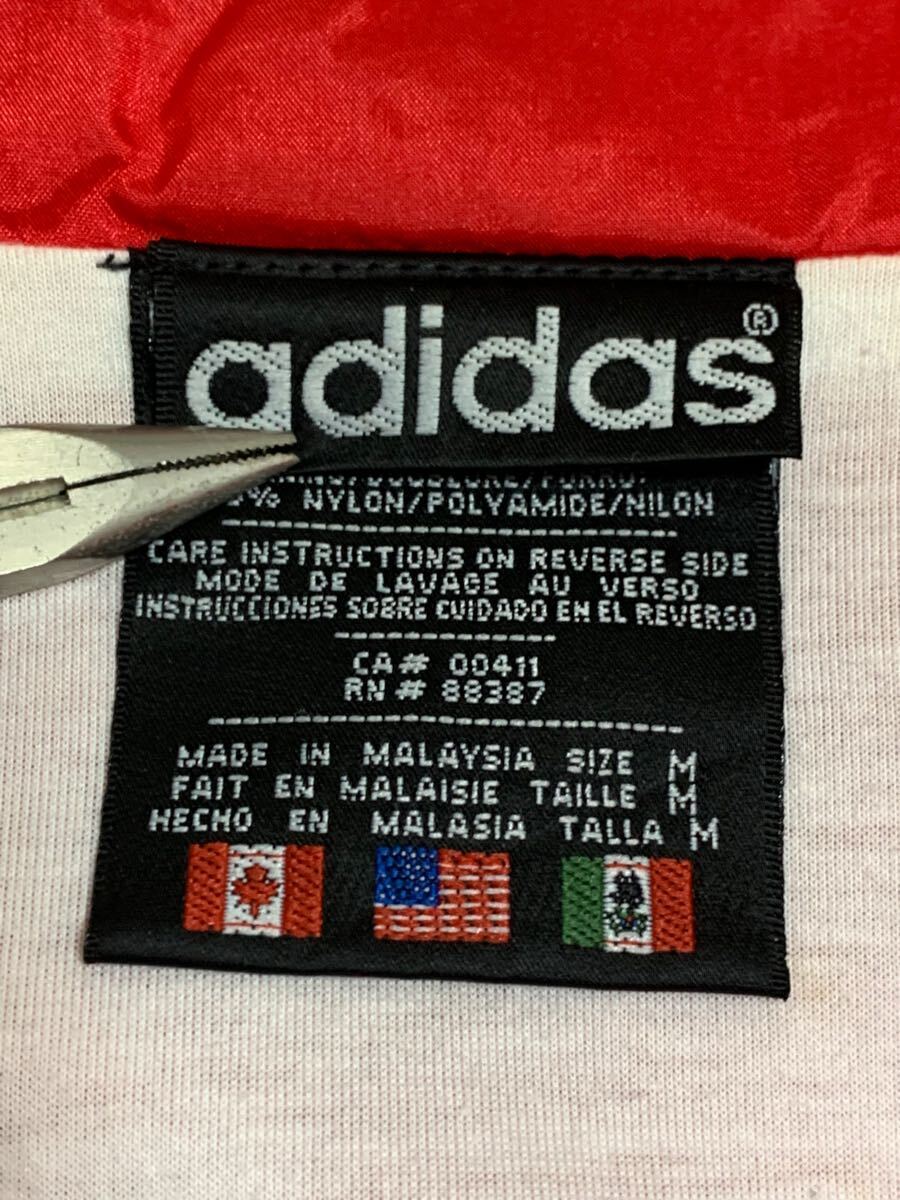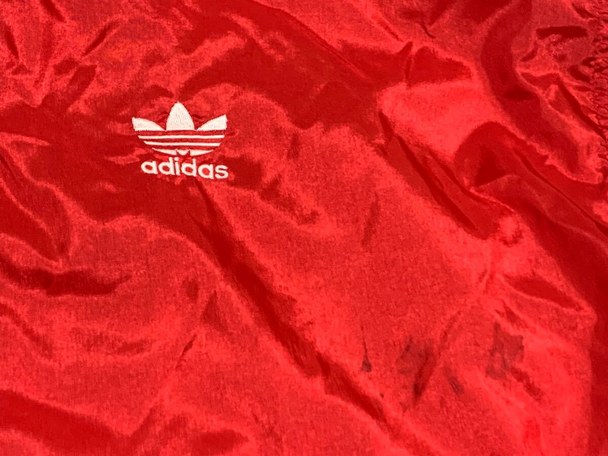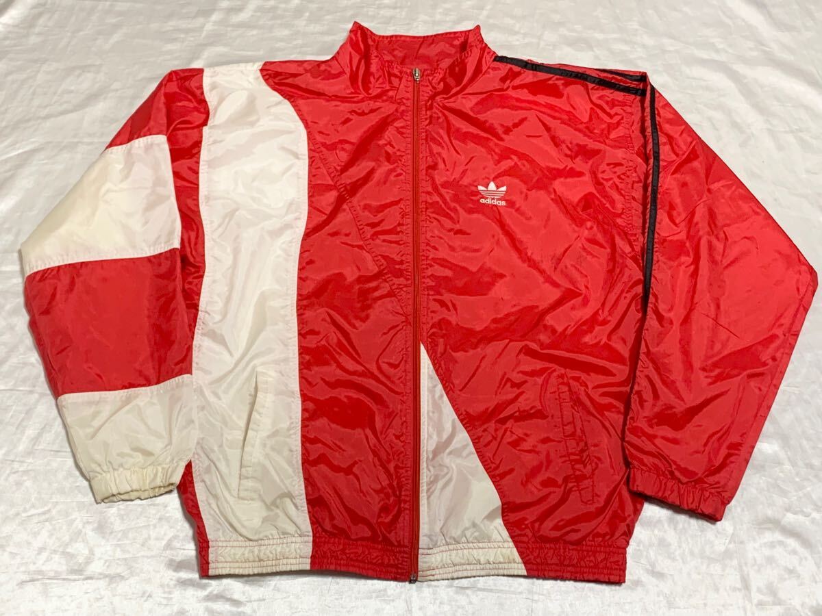 アディダスオリジナルス 90sビンテージトレフォイルナイロントラックジャケット USA Mサイズ 赤白です。
